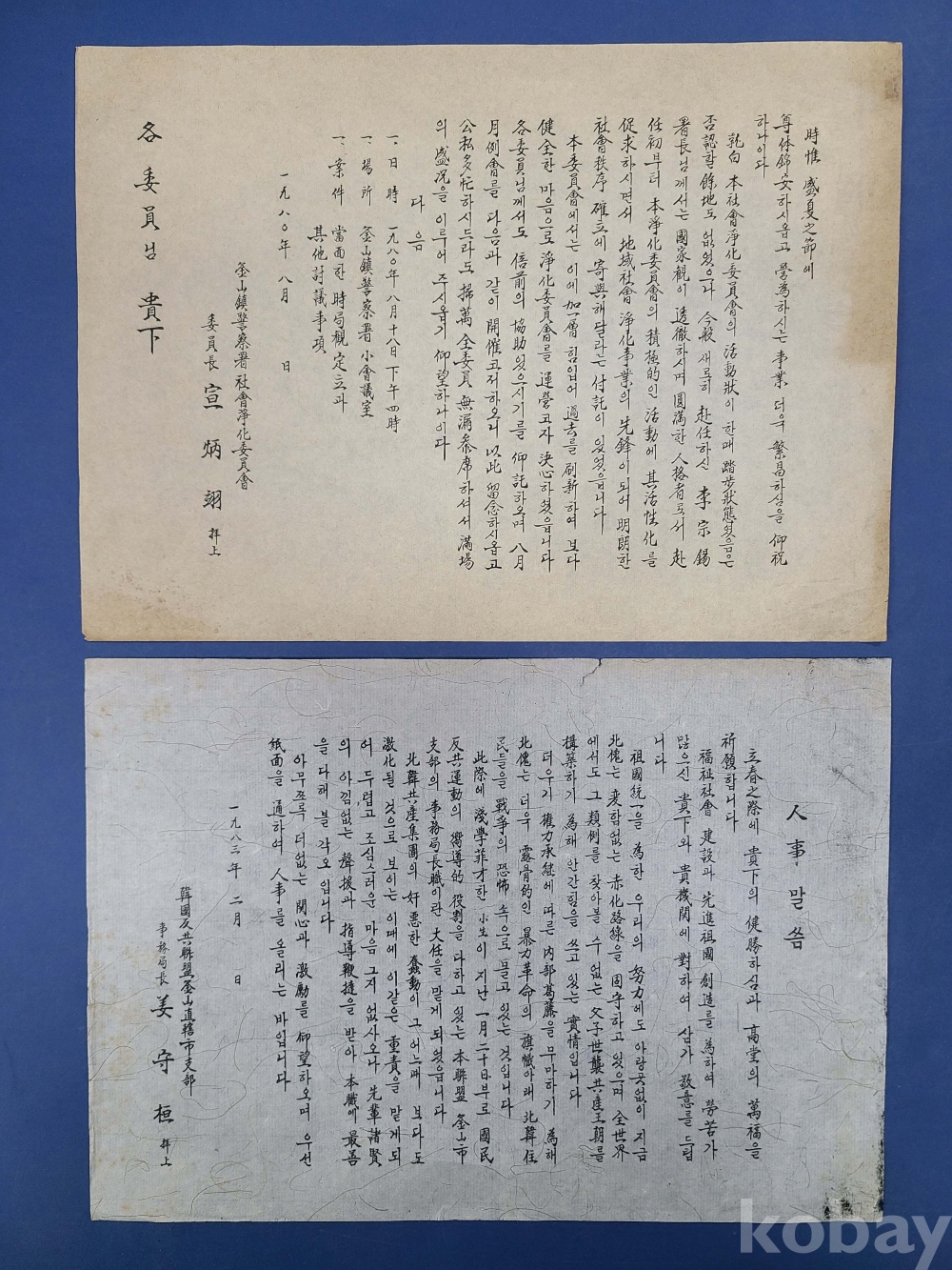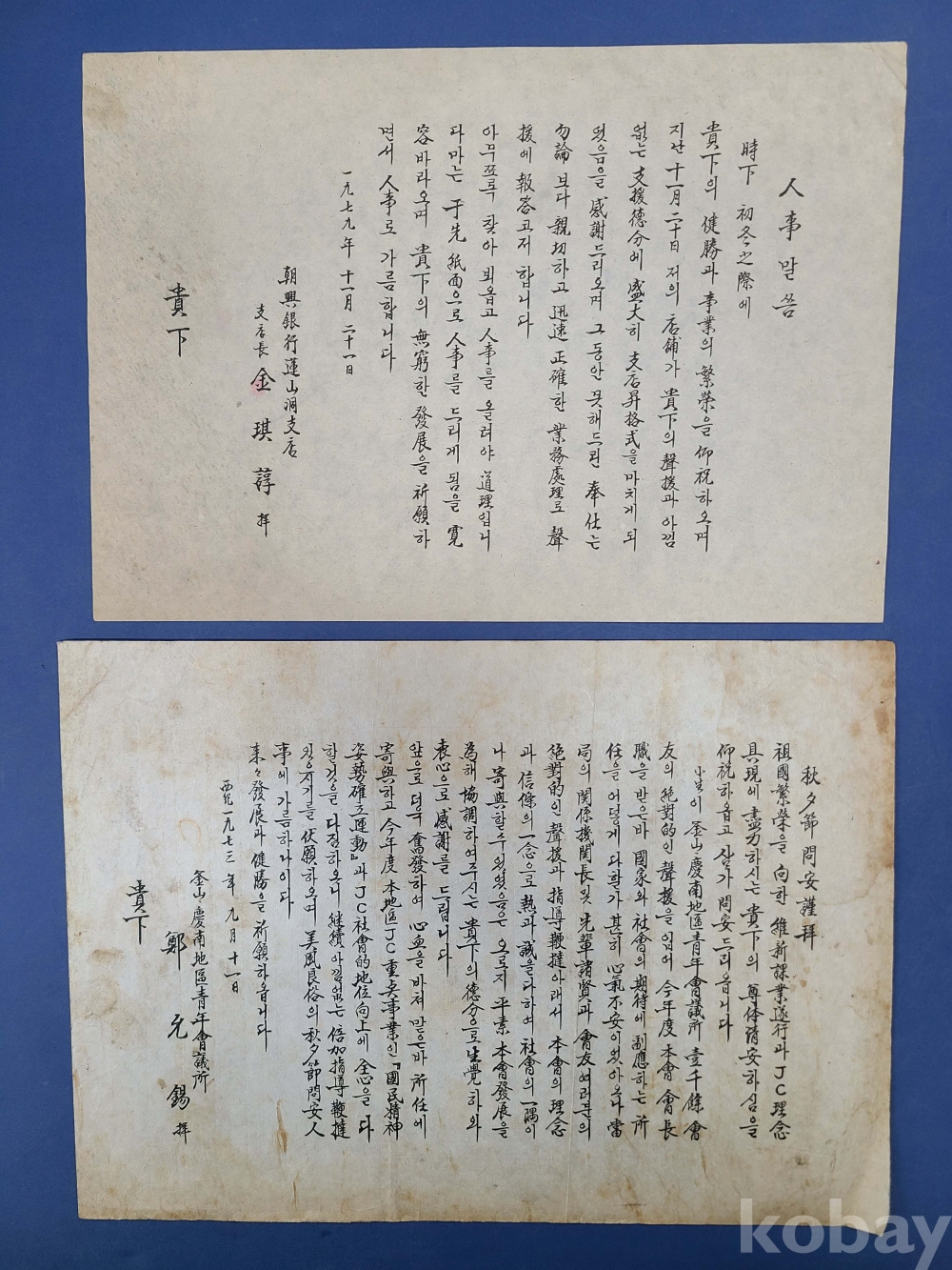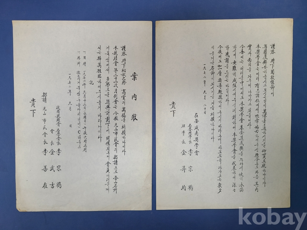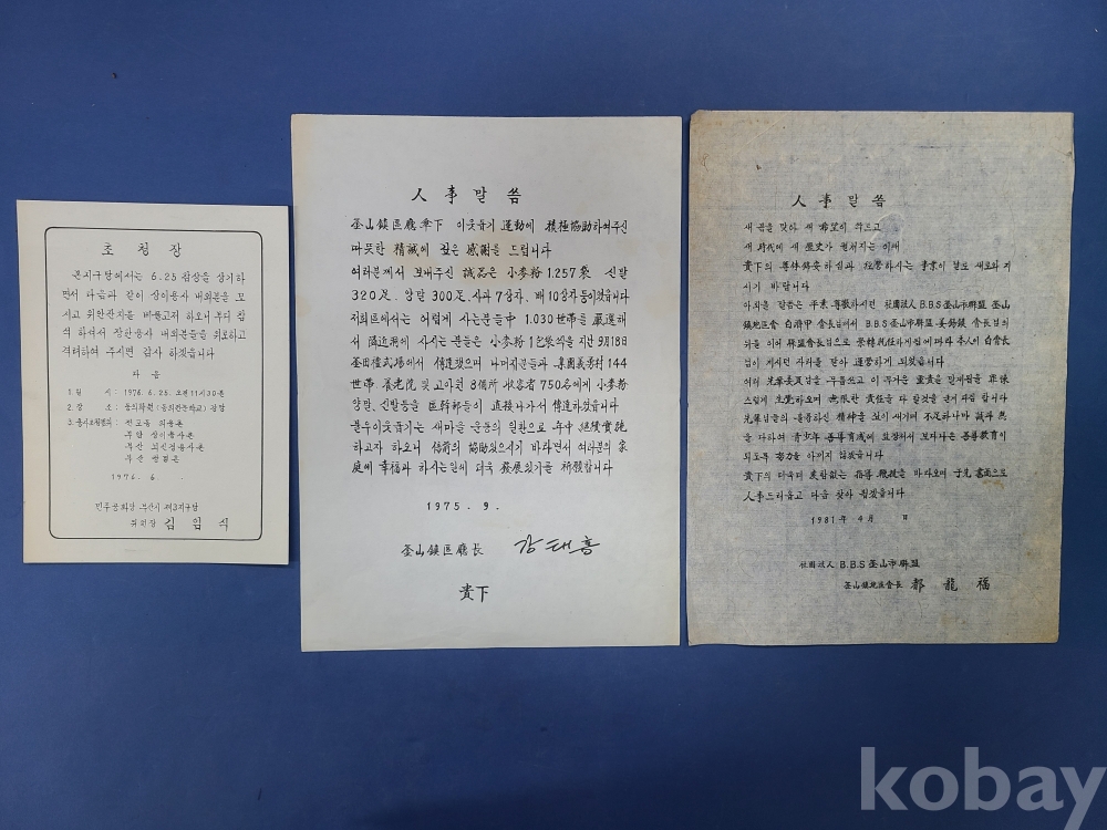 초청장(1976년,민주공화당). B.B.S부산진지구회장(1981년). 부산진구청장(1975년)