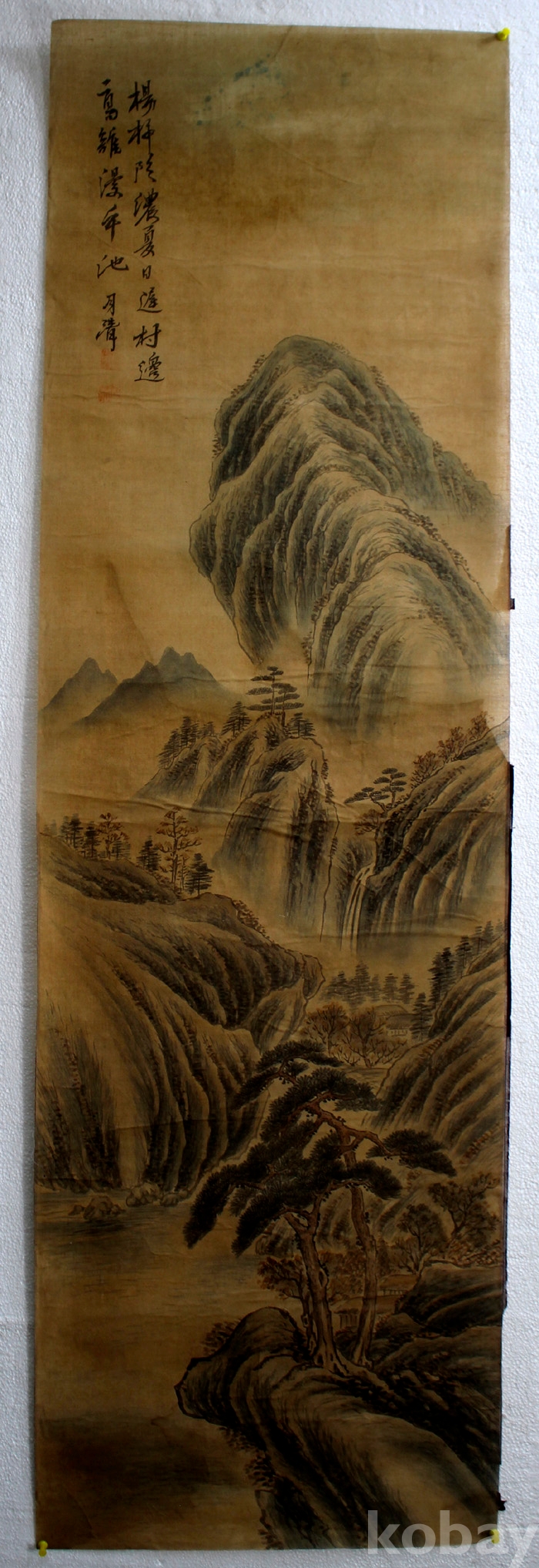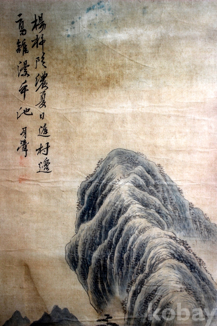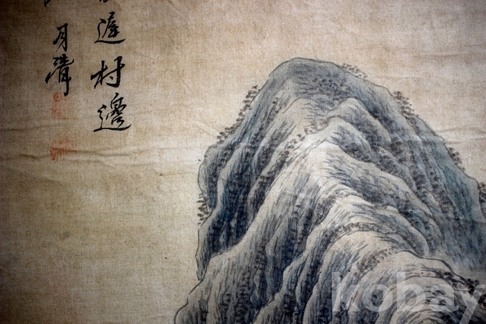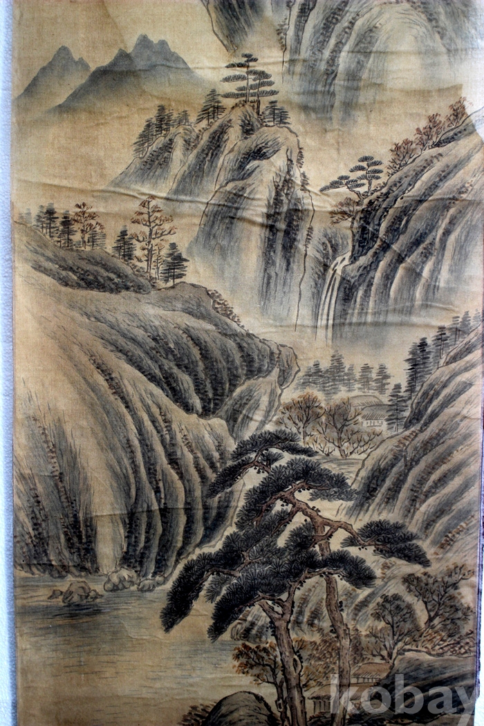 부드러운 천에 그려진 月淸(월청)의 산수 1점