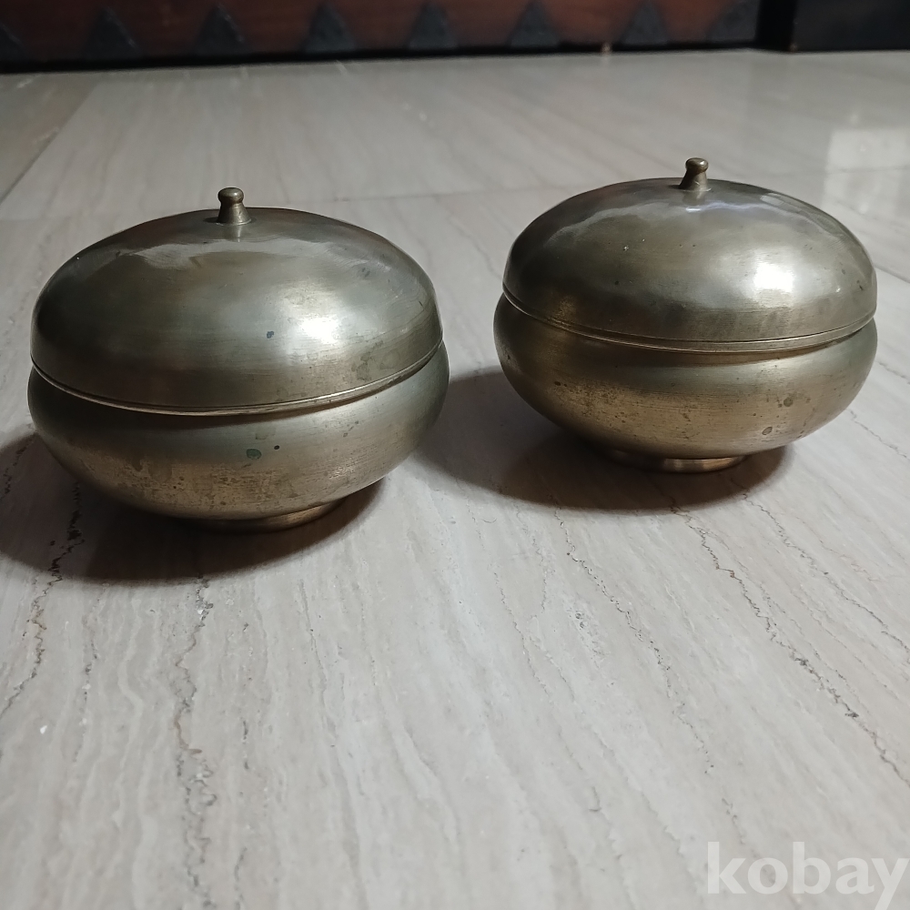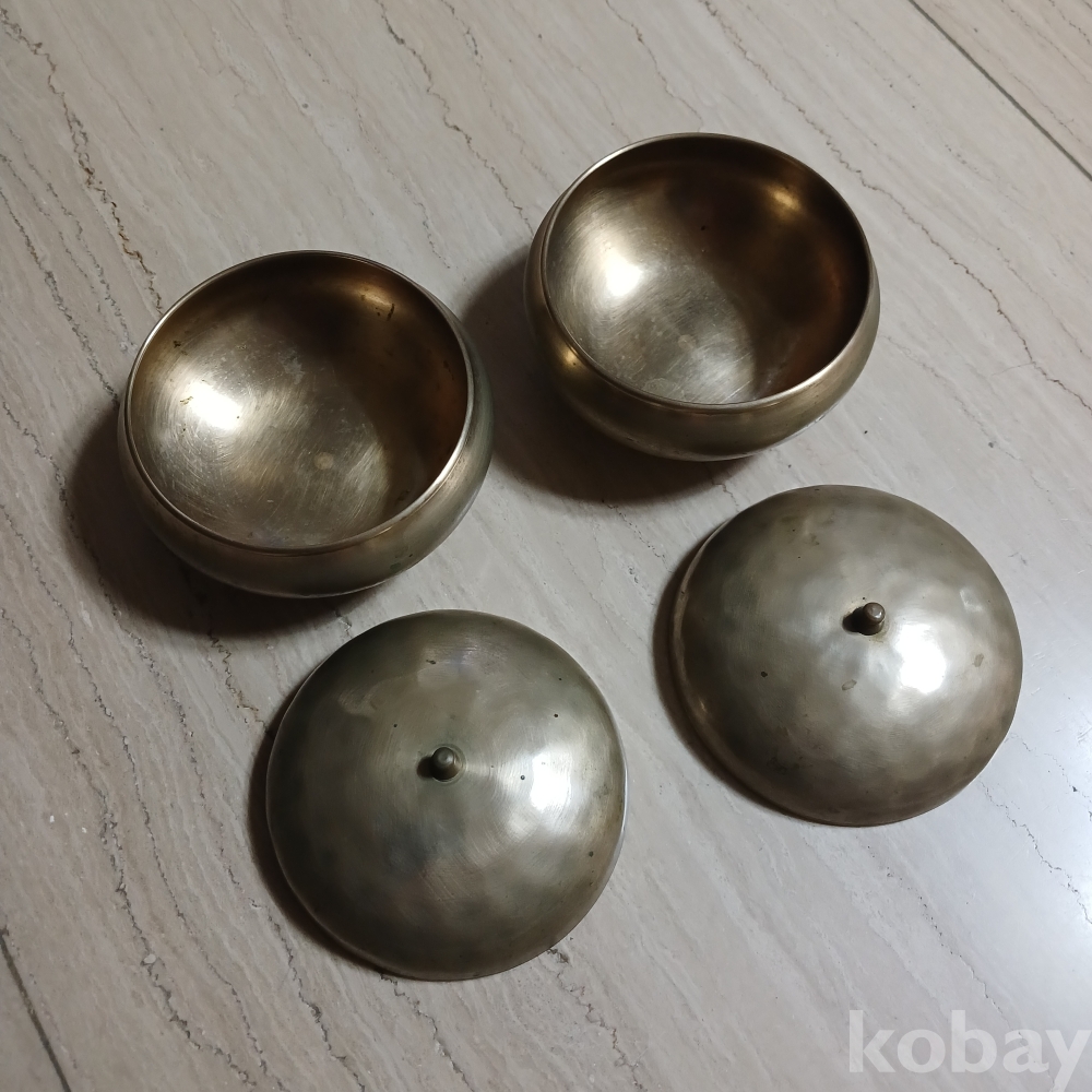 너무 예쁘고 귀엽습니다 앙팡지고 소담하고 앙증맞아요ㆍ 뚜껑은 손잡이가있고 두드림 자욱이 매력있군요 견과류나 사탕등 넣어 실사용하셔도되고 단밮죽이나 작은 디저트 또는 손님용 스프나 죽 그릇으로 활용하시면 대접 받는이는 찬사를 부르겠어요 ㆍ2개 1쌍입니다