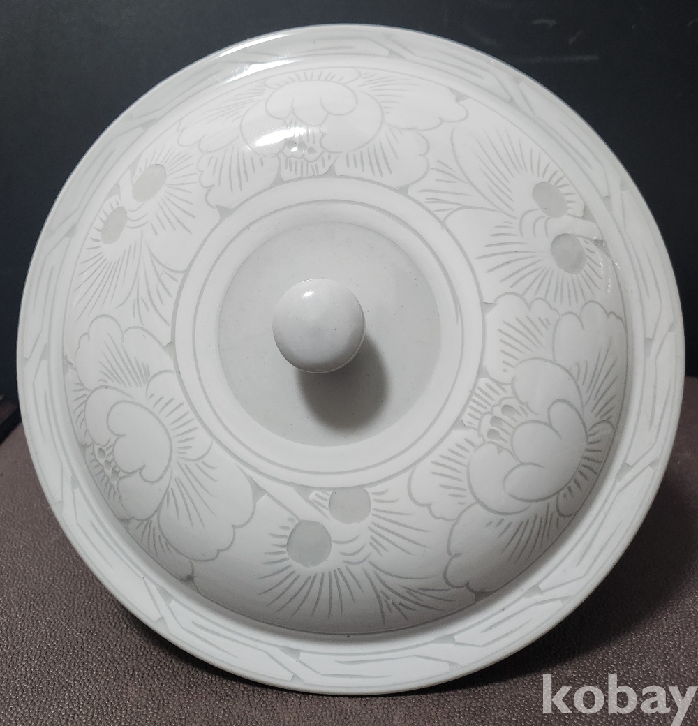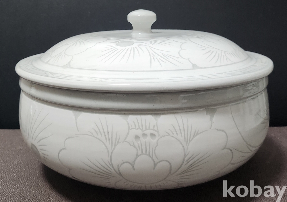 백자음각모란문대합 白磁陰刻牡丹紋大盒