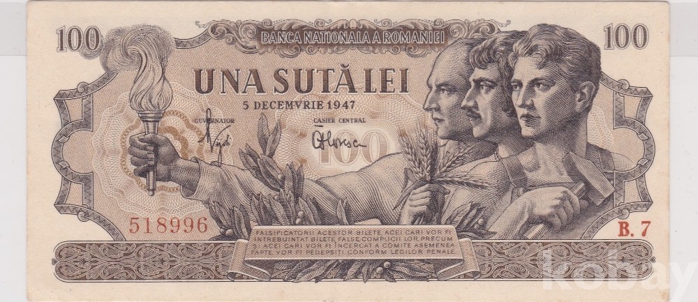 액면 : 100 레우 발행 : 1947년 상태 : 극미 비고 : P-67