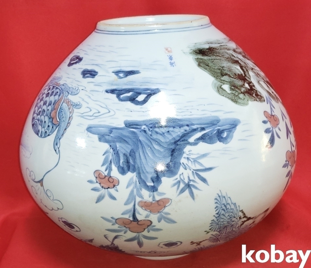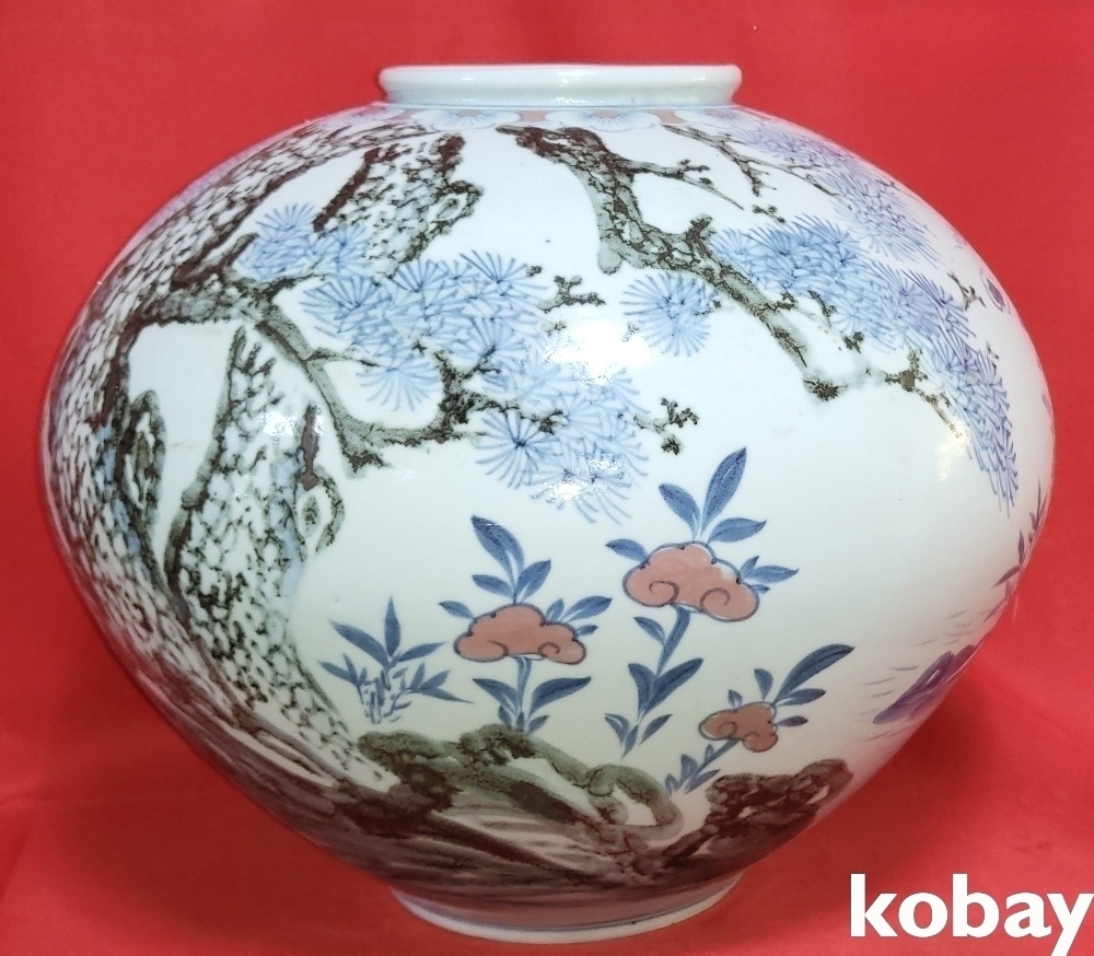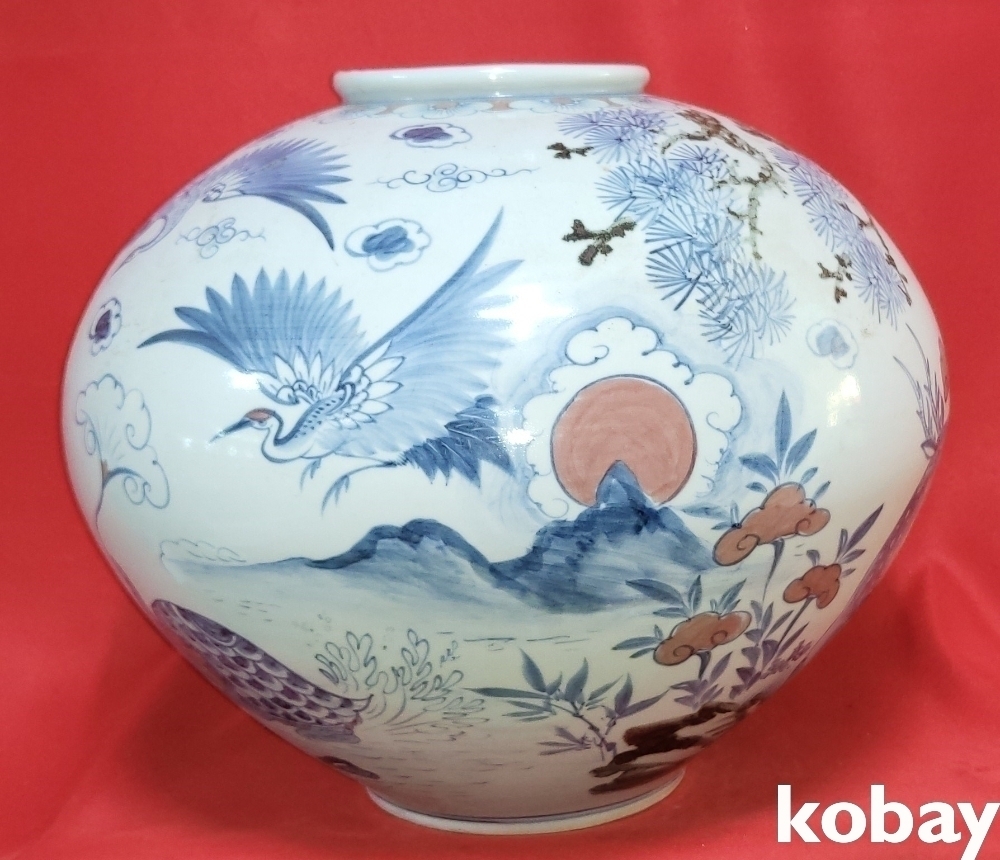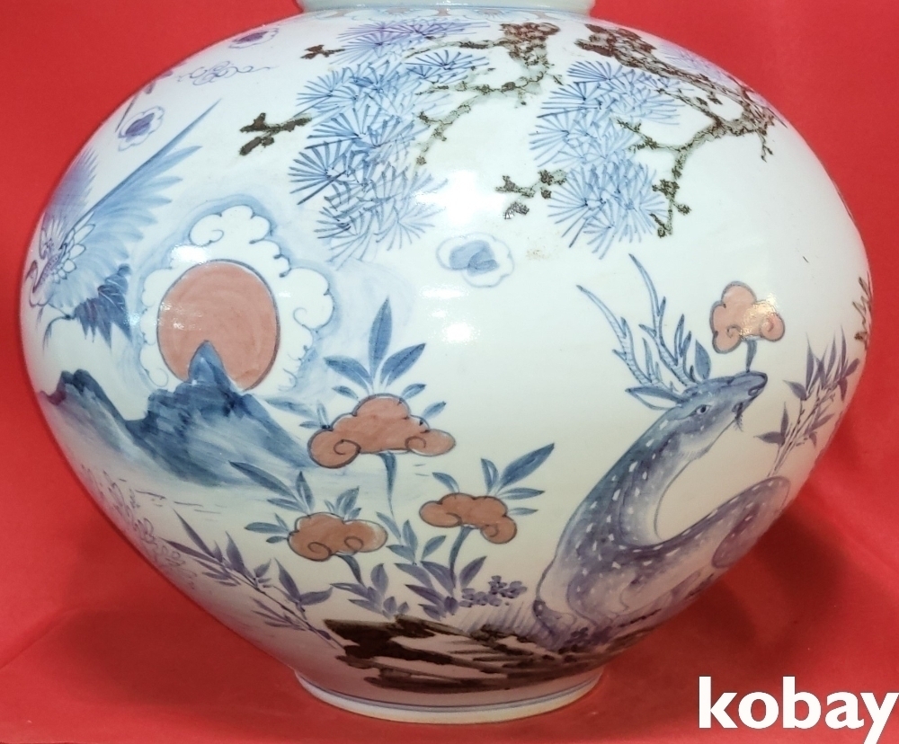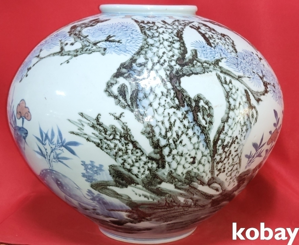 해동도예 철화 십장생문 큰 달항아리 입니다