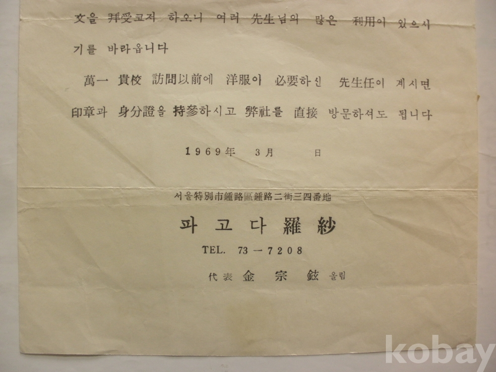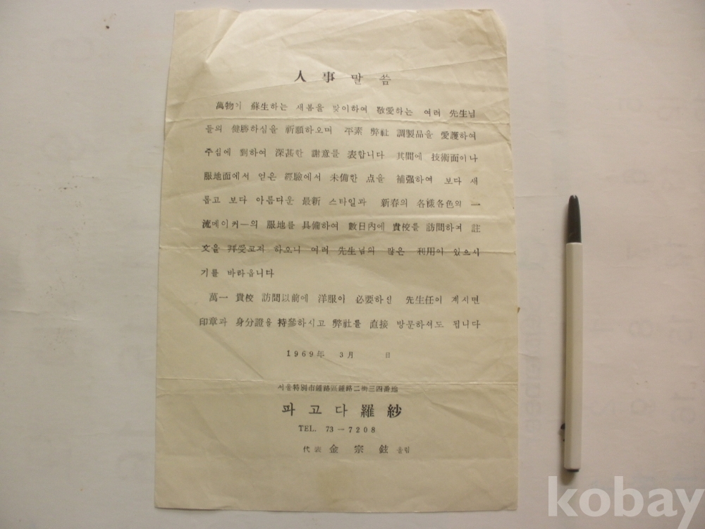 파고다 라사 - 인사말씀 (1969년, 서울 종로구)