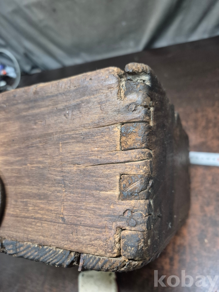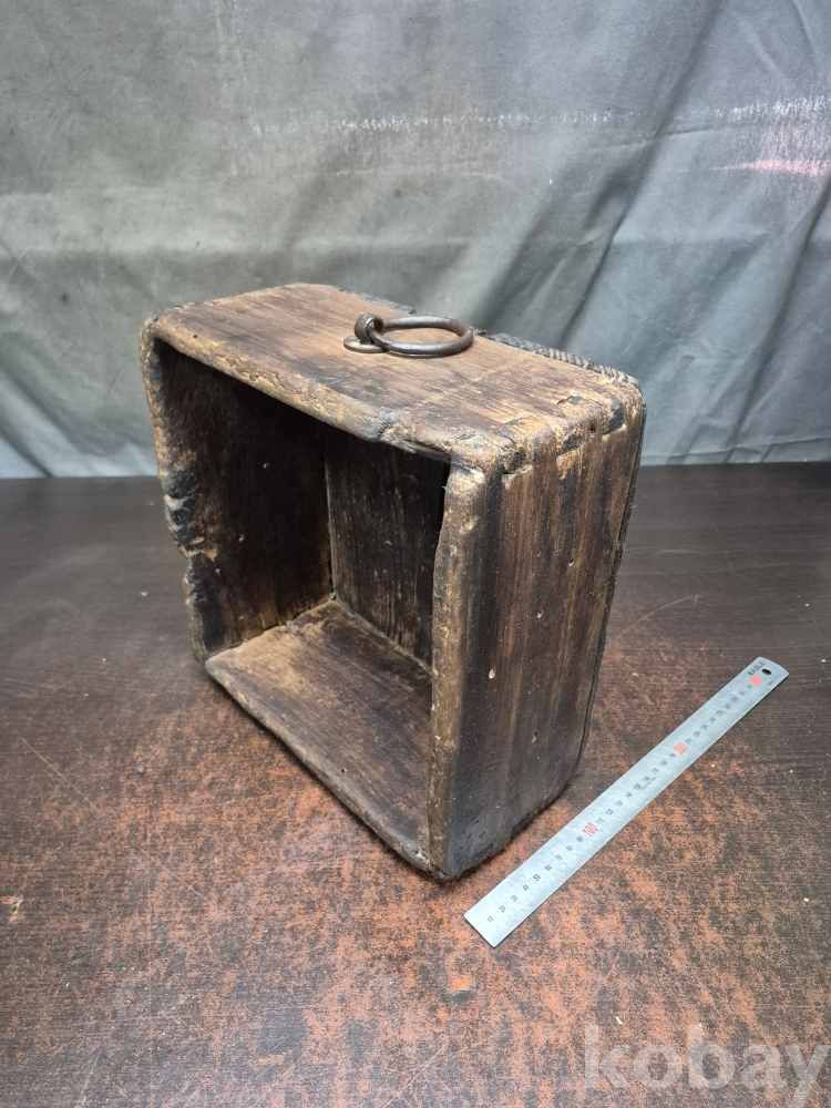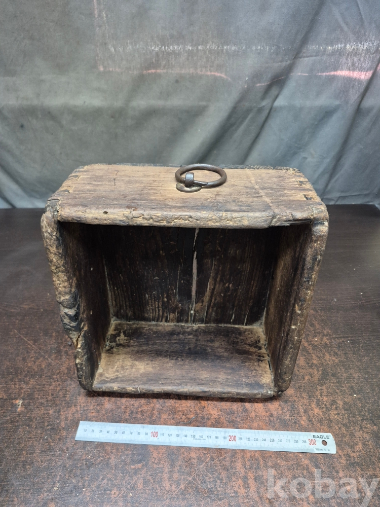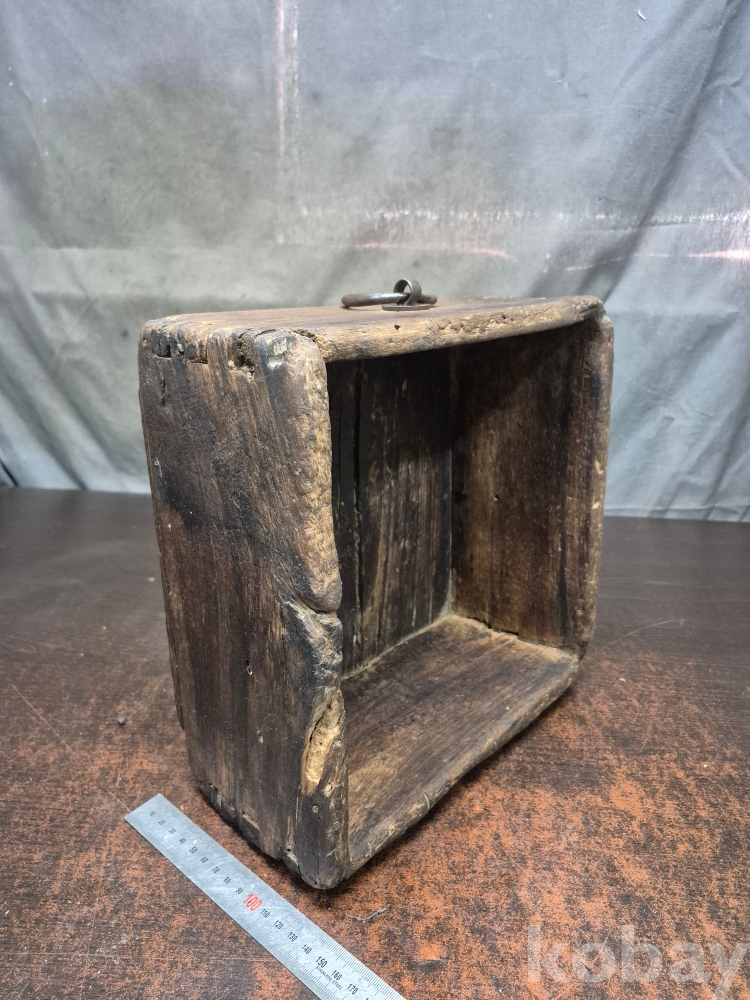 오래된 원목으로 한말 됫박 에 장쇠를 걸어놓은 소품 함 사괴물림으로 만들어져 있어요 28*28*14