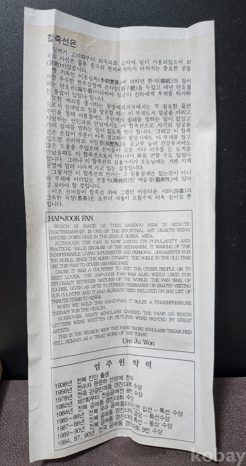 무형문화재 10호 선자장 엄주원 作品 / 하반영[河畔影] 초년作品 < 원목 케이스 완비 >