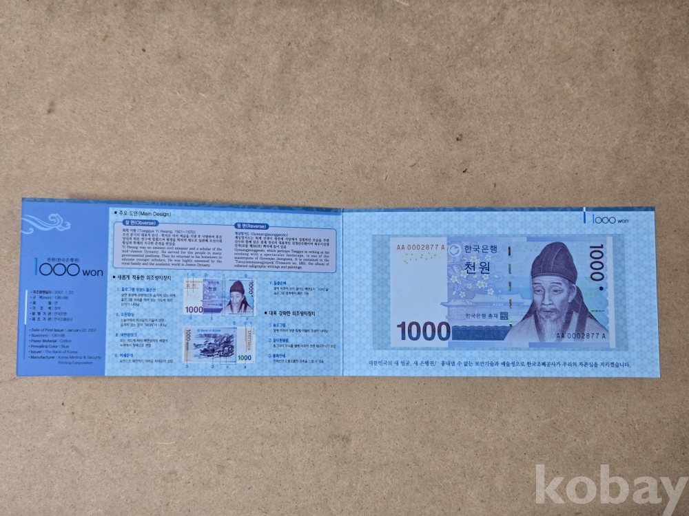 == 한국은행 3차 천원권 == AAA0002878번 경매첩도 함께 올립니다.
