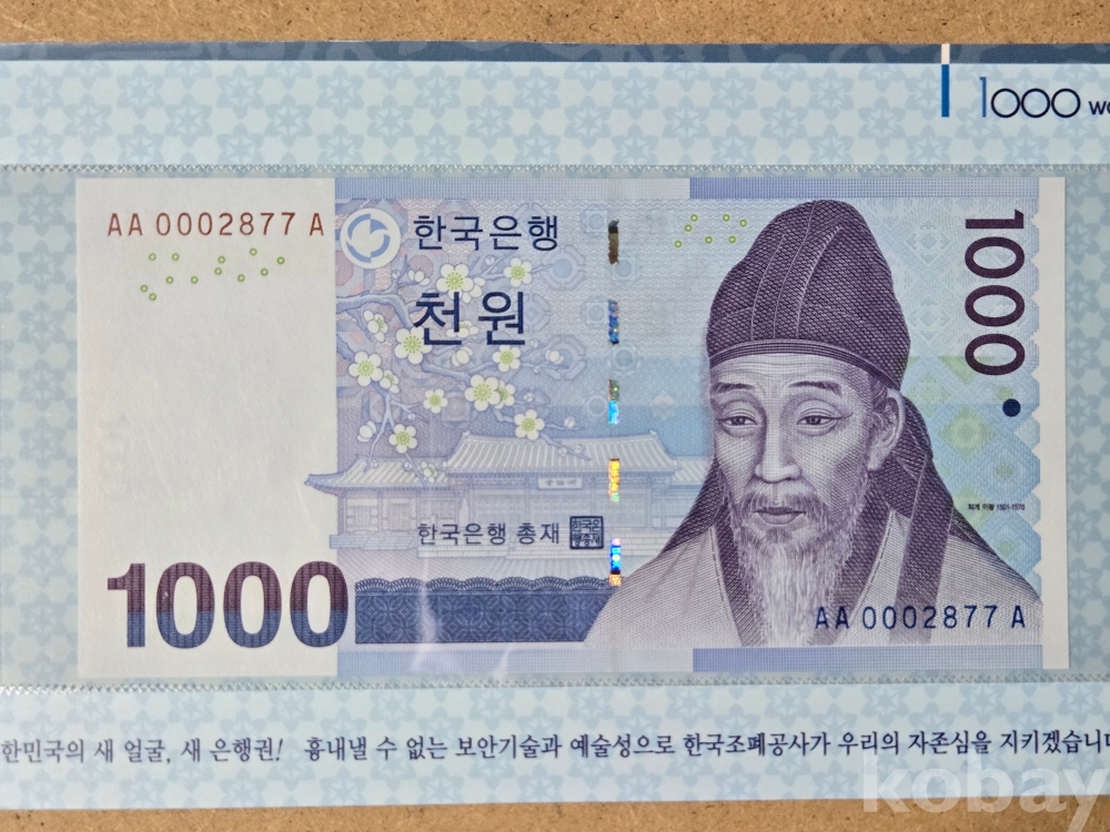 빠른번호 초판 == 한국은행 3차 천원권 == AAA0002877번 경매첩