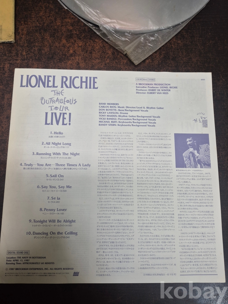 1987년 라이노넬 리치 실황 공연 THE OUTRAGEOUS TOUR LIVE 레이져 디스크