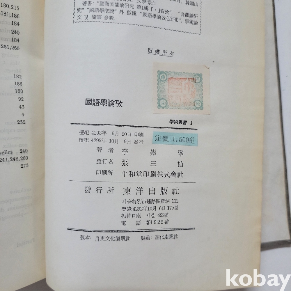 [희귀본] 국어학논고 ; 1960년 동양출판사 발행판/ 중급같음 (내용양호) .. 서고-에세09