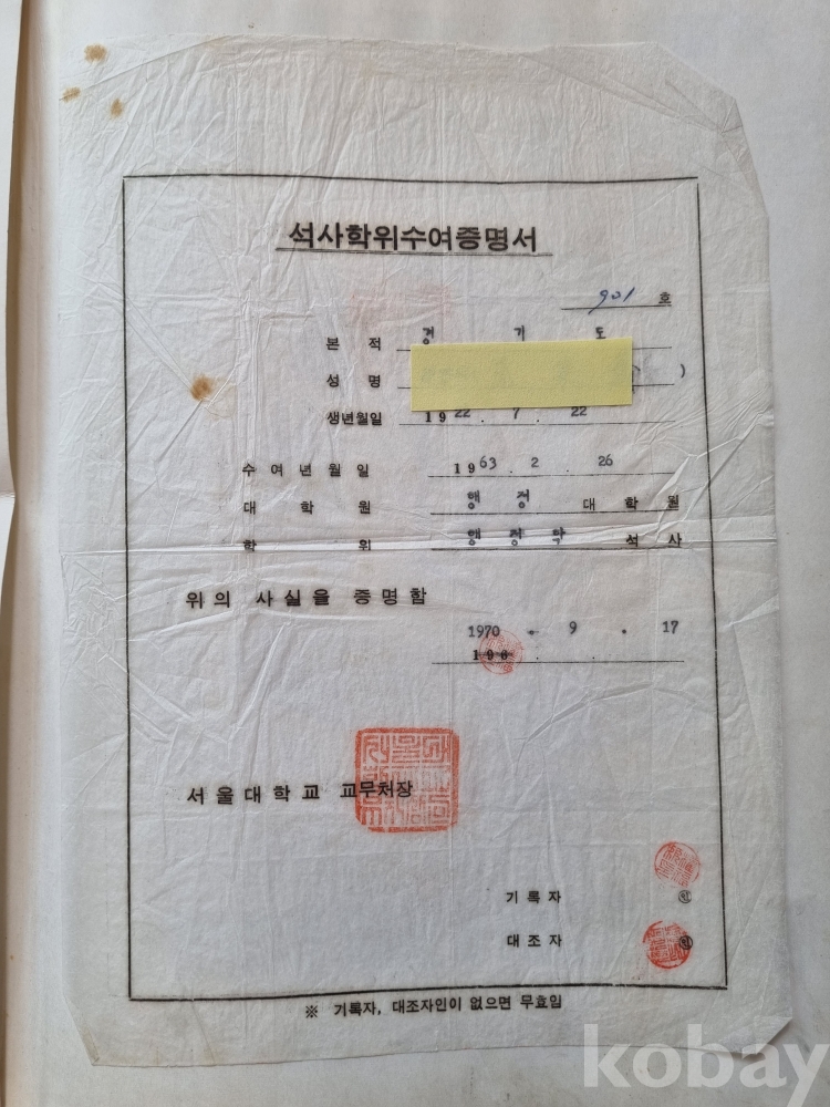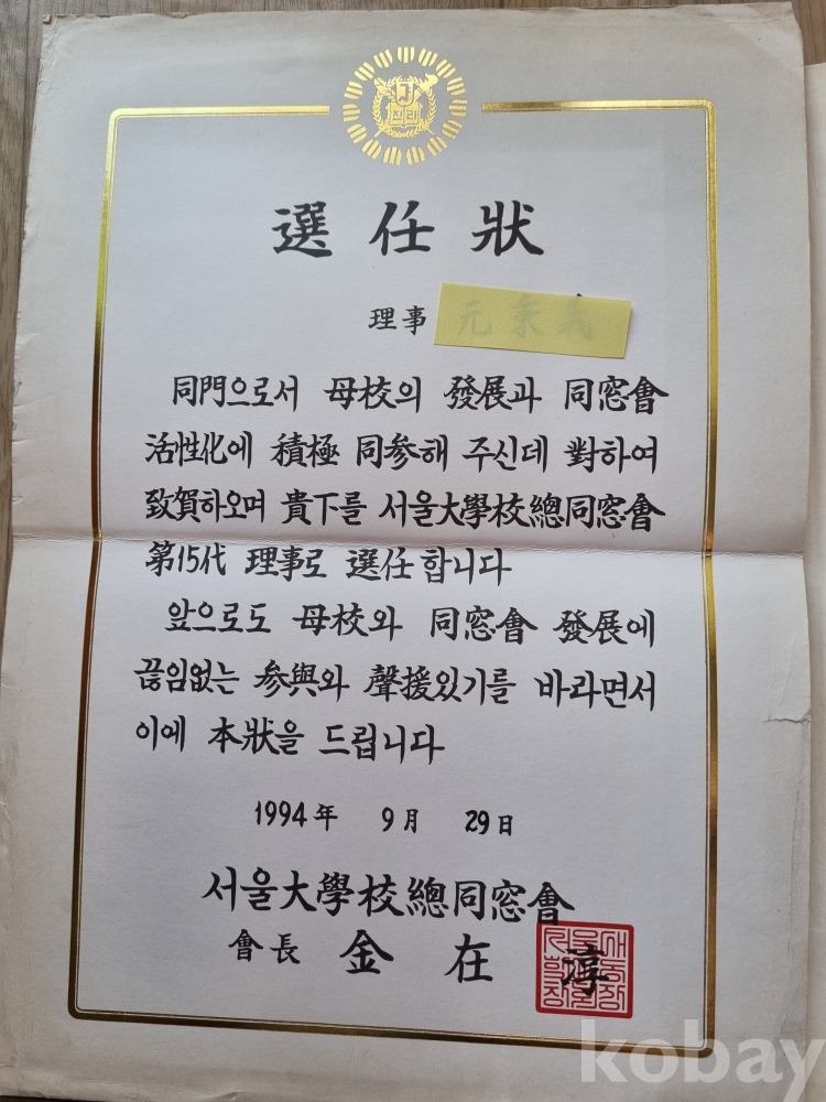 선임장과 석사학위 수여증명서도 함께 들어 있습니다.