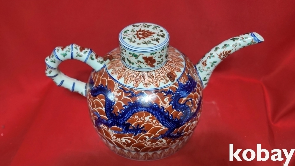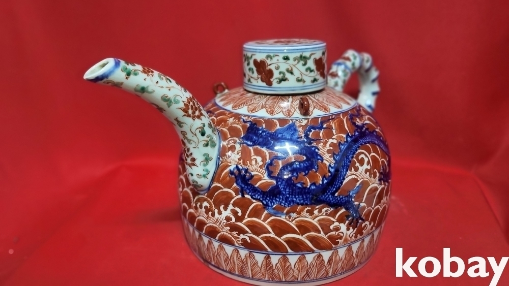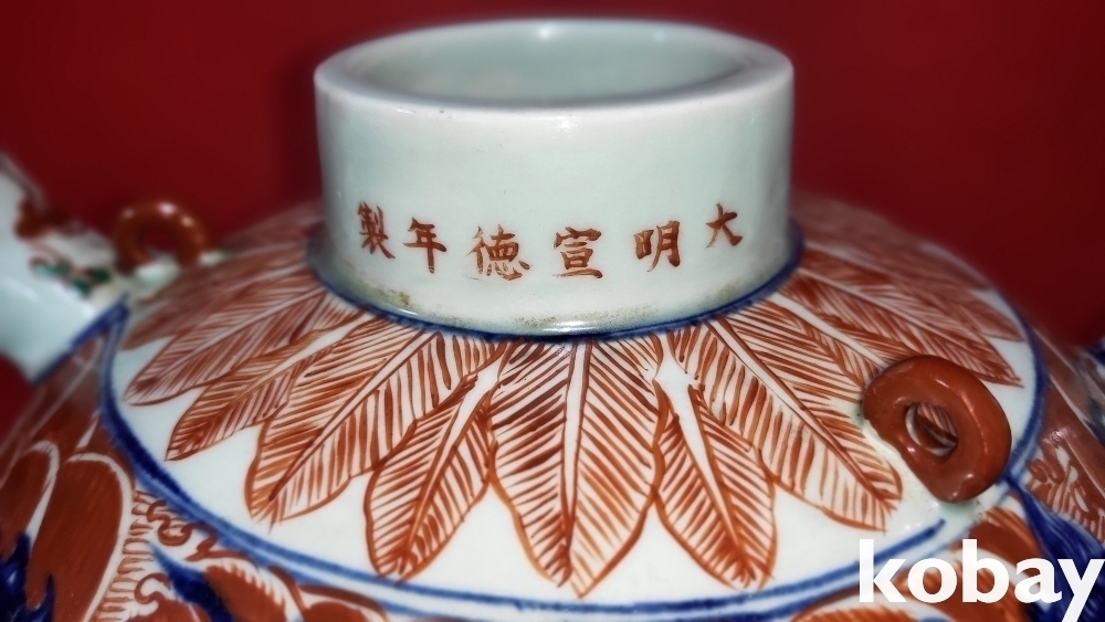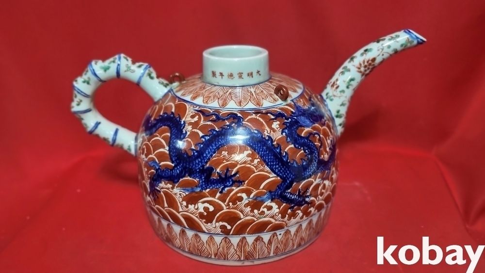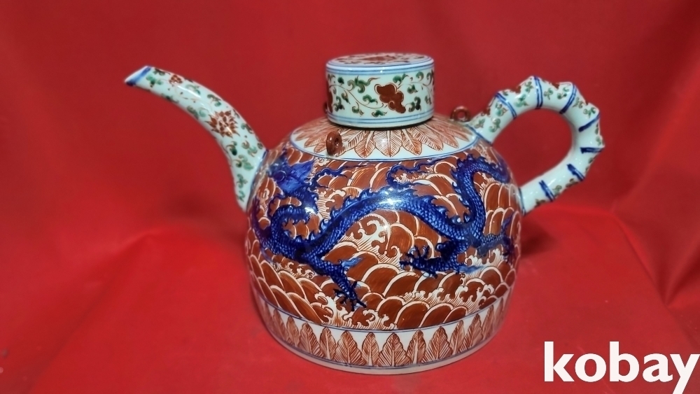 대명선덕연제 관지 청화 유리홍 해수(海水) 쌍용(雙龍)문양 주전자입니다,