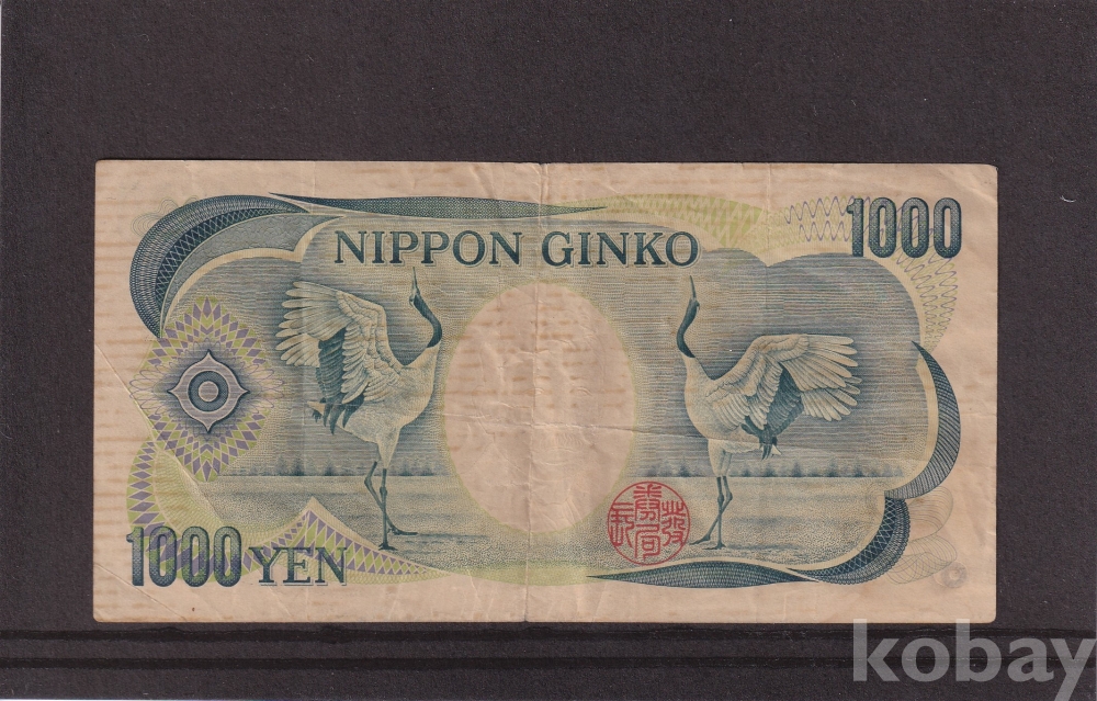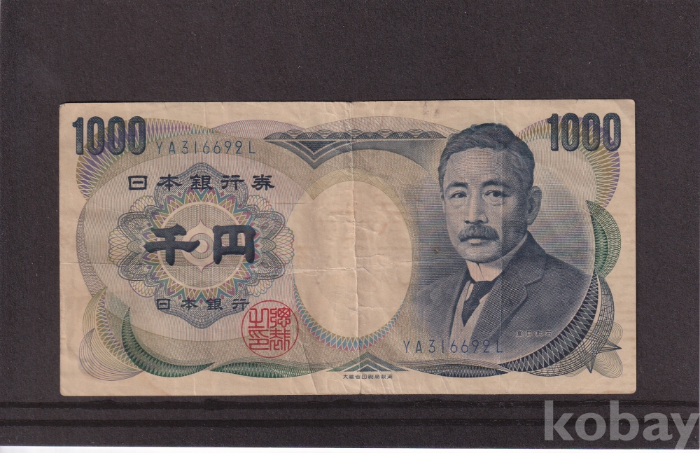 - 일본에서 2001년 발행개시된 1000엔권 대장성명판 녹색번호 지폐 입니다.