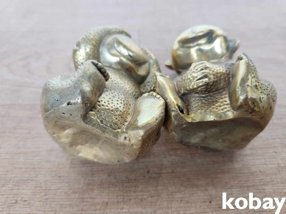 입 가리고, 웃고 있는 동 형상 2개 입니다.