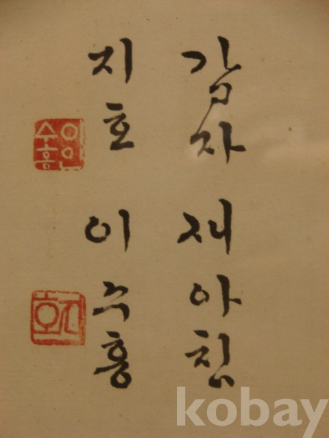 대전 심사한 지호 이수홍(芝湖 李秀弘)의 "믿음, 소망, 사랑" 글씨(21×37)입니다.