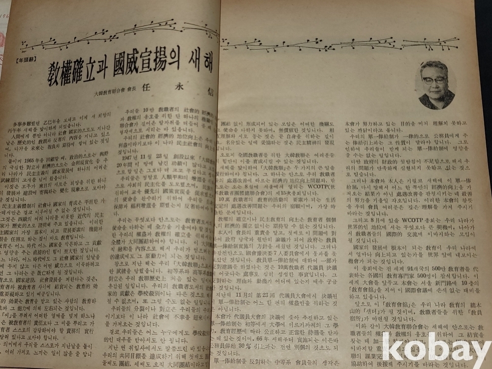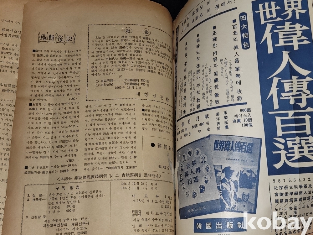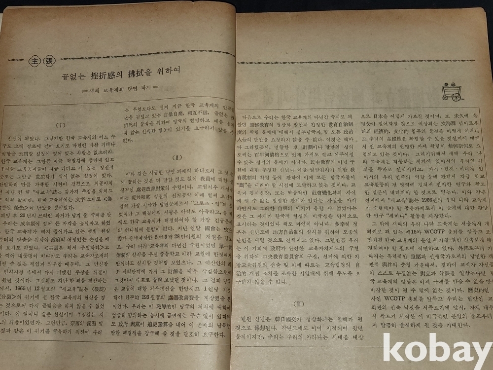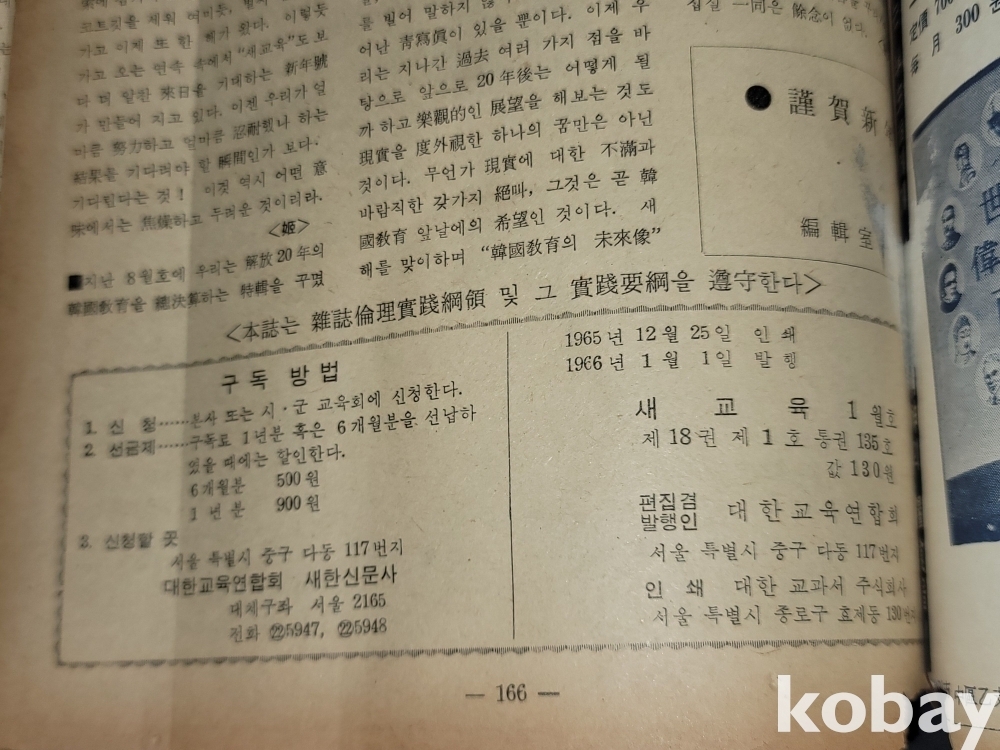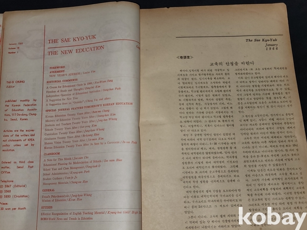 빈티지 세월 감이 느껴지는 희귀한 1966년 1월 1일 대한교육연합회 발행 새교육 1월호 고서적입니다.