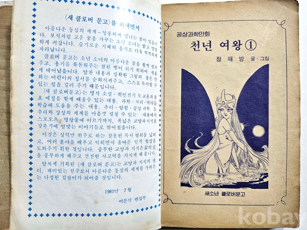 물 품 명 | 천년 여왕 1편 / 정해방 만화 / 1982년 / 어문각 |