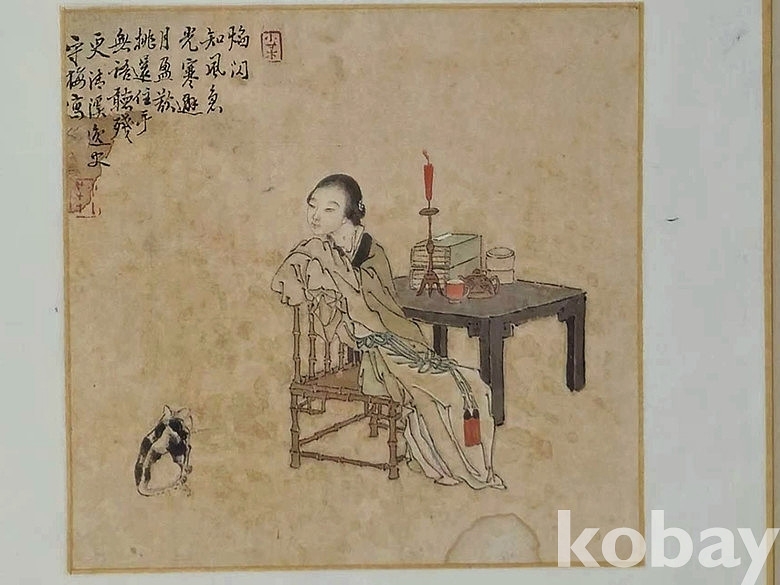 청대후기 인물화대가 왕소(王素-왕소매) 미인영모도(仕女翎毛图)