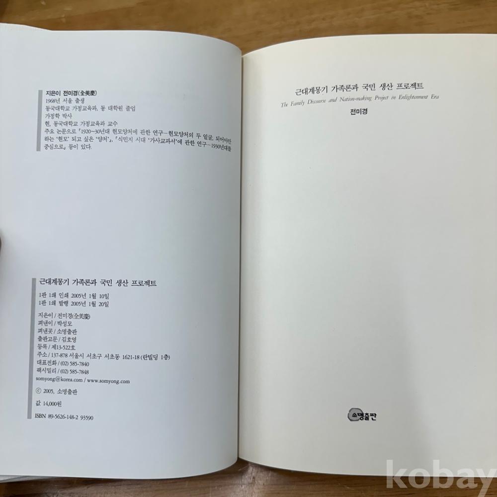 [한국근대사, 청년, 가족, 남녀동권] 전미경, <근대 계몽기 가족론과 국민 생산 프로젝트>, 소명출판, 2005, p. 254 , 상태 중상급(사진참조)