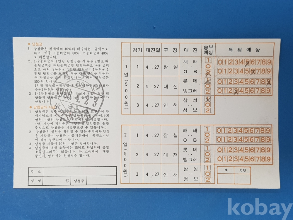 **** 1986년/제5회 야구복권/김일융(삼성구단), '85최다승투수상/서울올림픽대회조직위원회