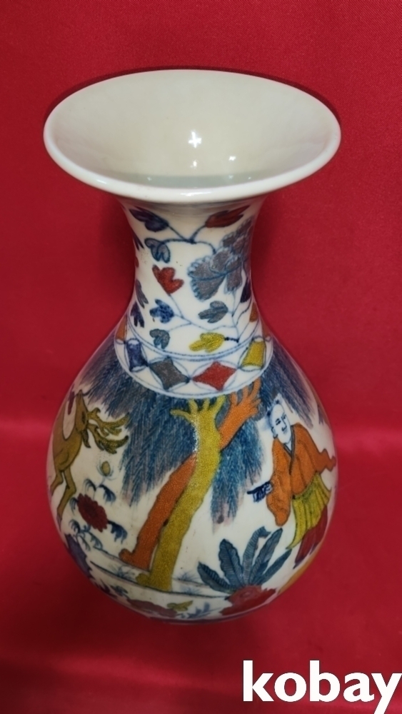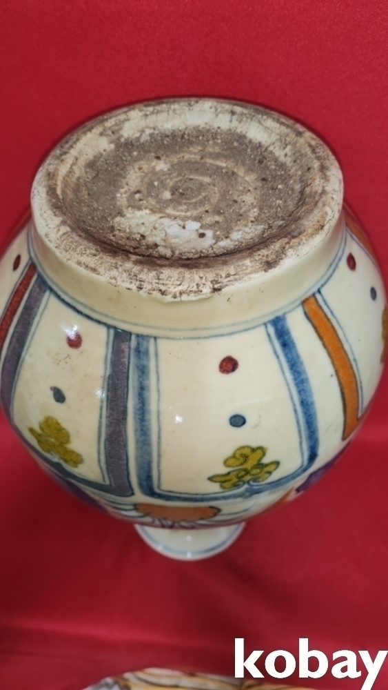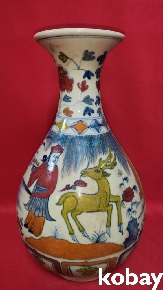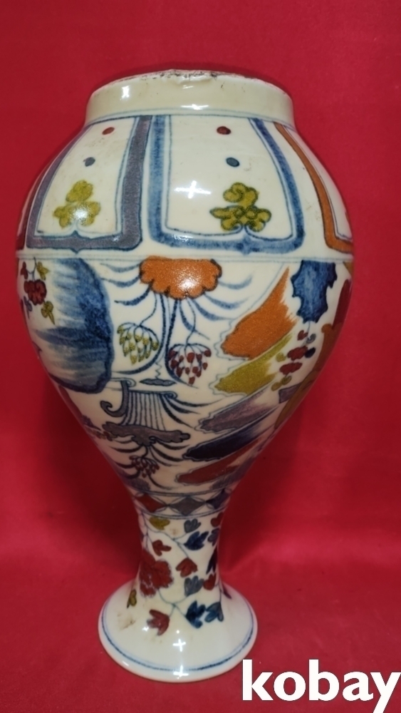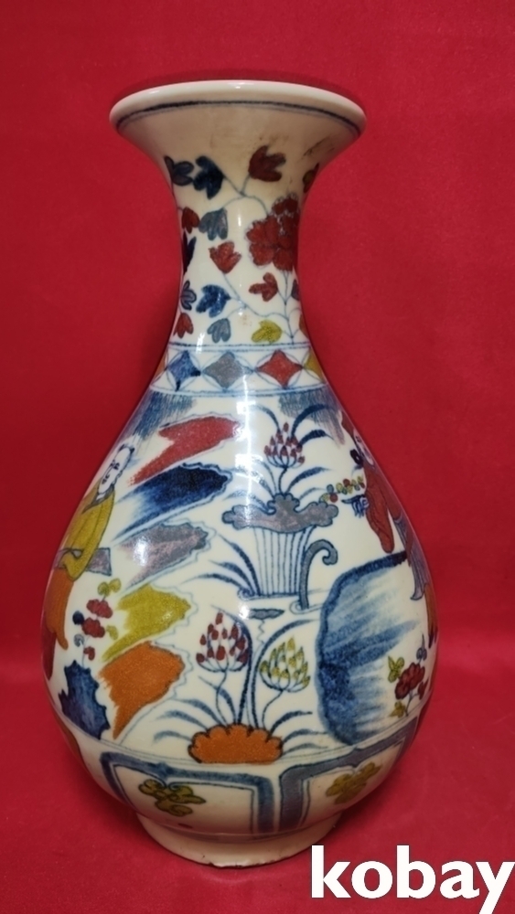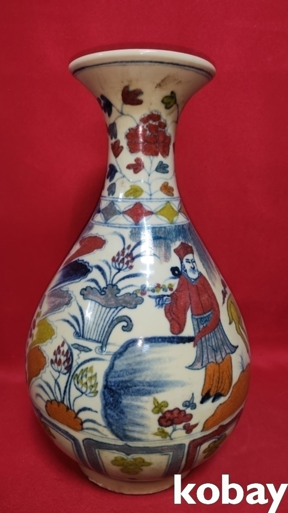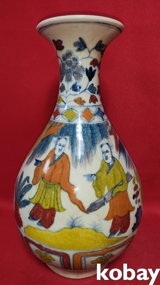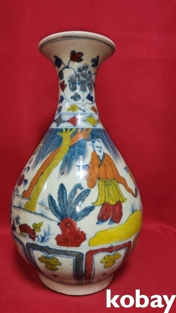높은 연대 갖춘 오채 인물 문양 광구병입니다,