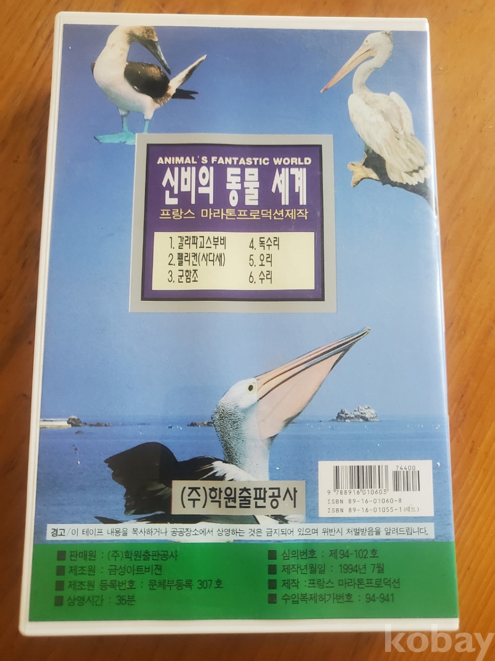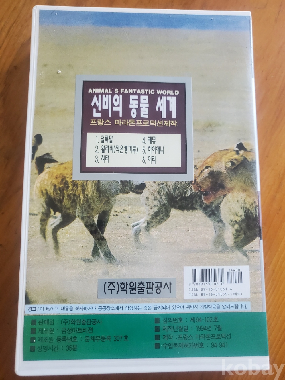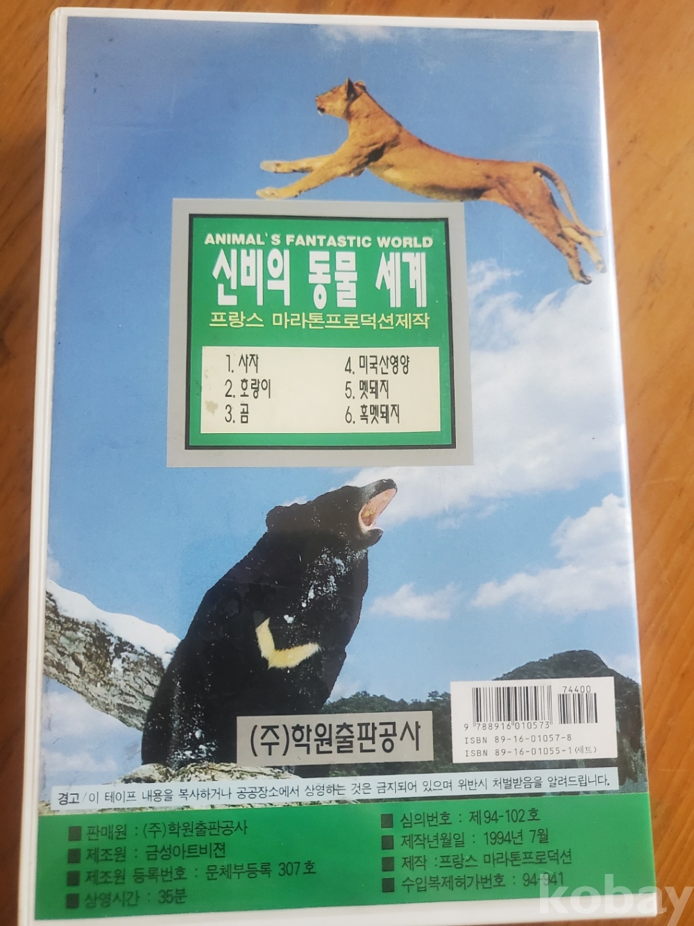 1. 신비의 동물 세계 1-6, 주 학원출판공사, 프랑스 마라톤프로덕션제작, 1994년, 각 35분, 상태 상, 사진 참조
