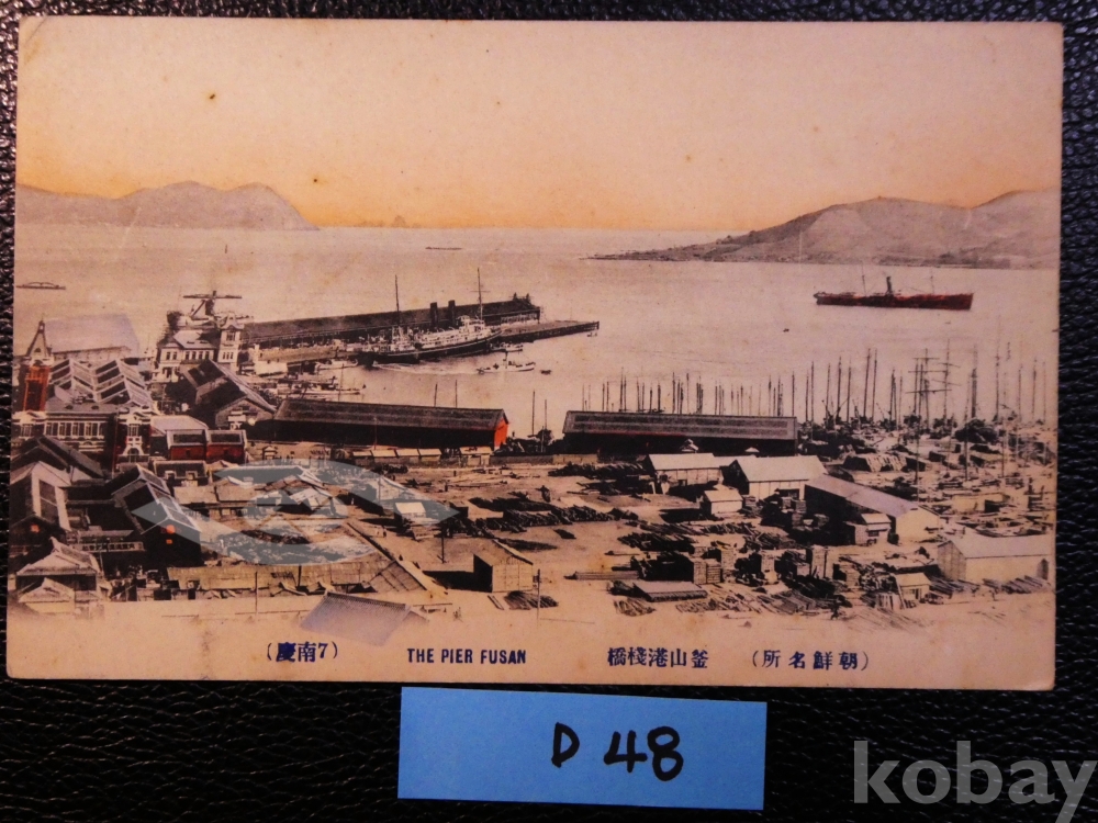 ▣근대한국엽서(진본): 부산항 잔교 전경, 관부연락선 접안 모습, 귀한 수채색 컬러(사람이 직접 채색을 입힌 엽서)/1매/매우 희귀/역사자료.