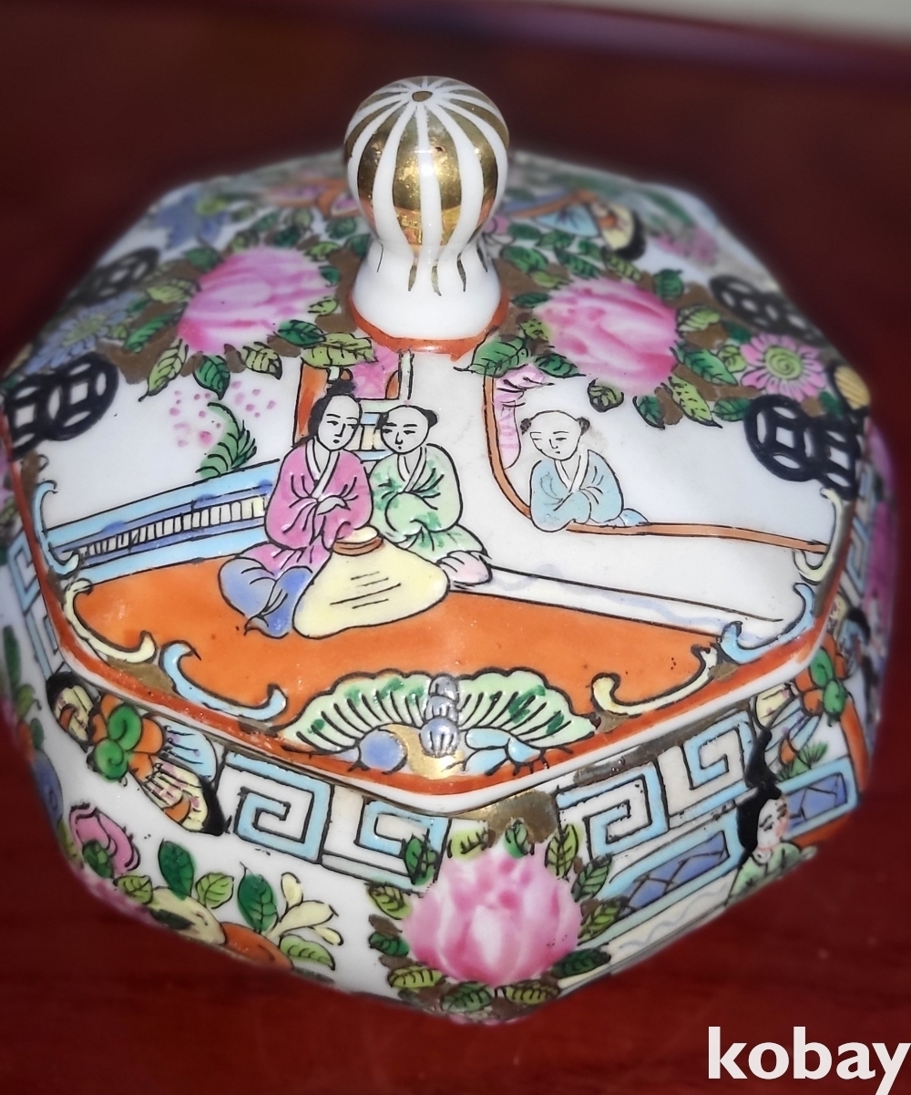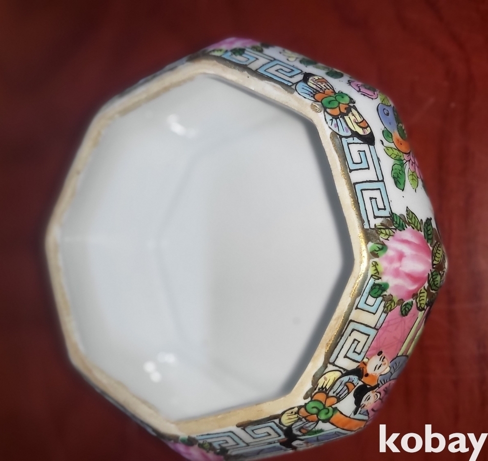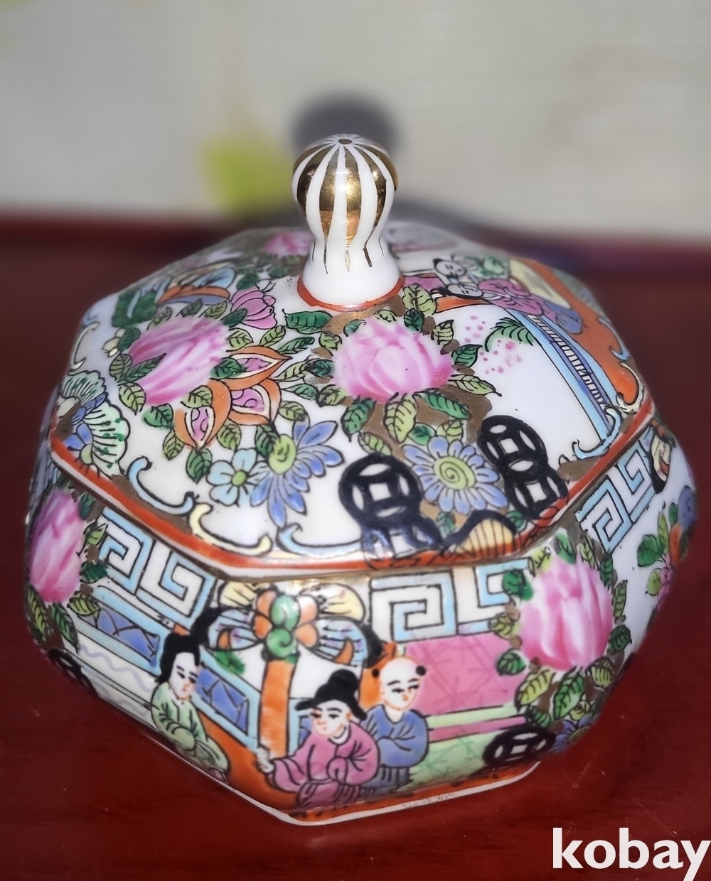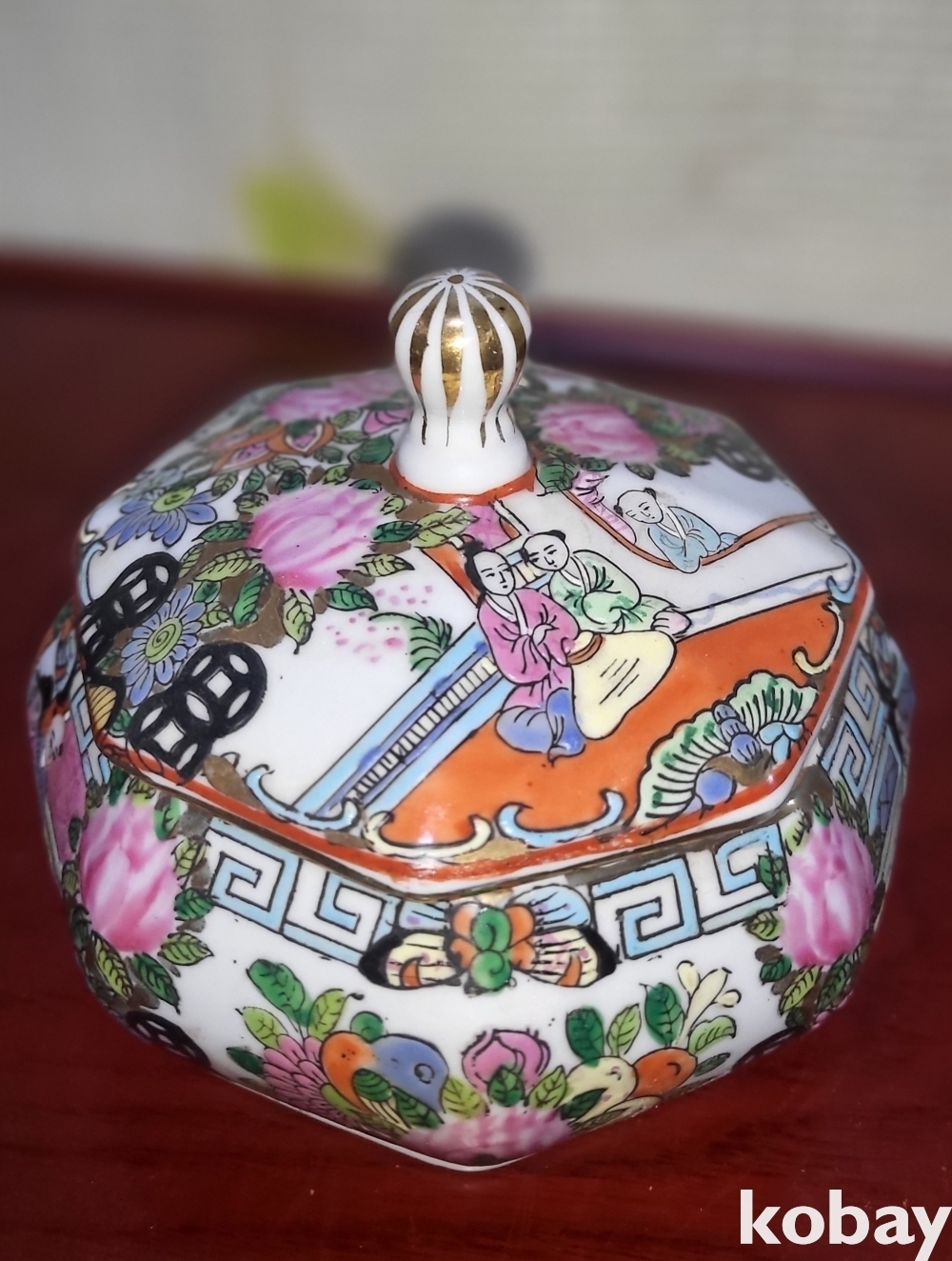 대청 건륭 관지 분채 인물문양 8각 유개호입니다,