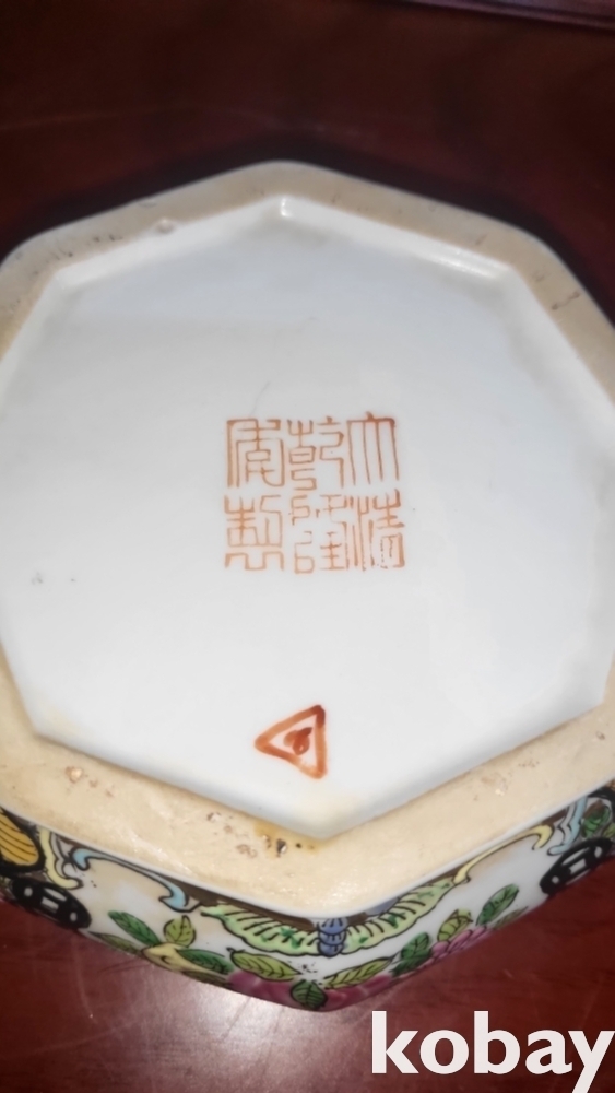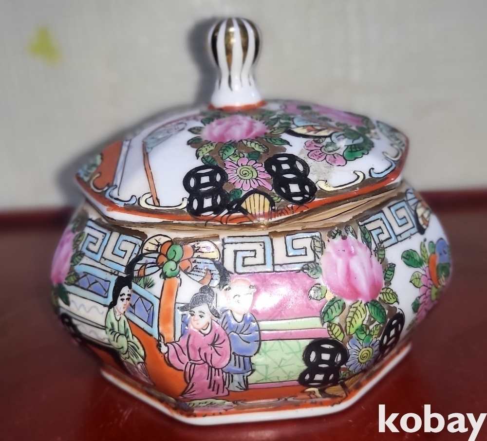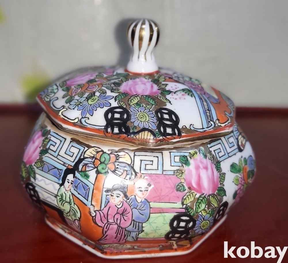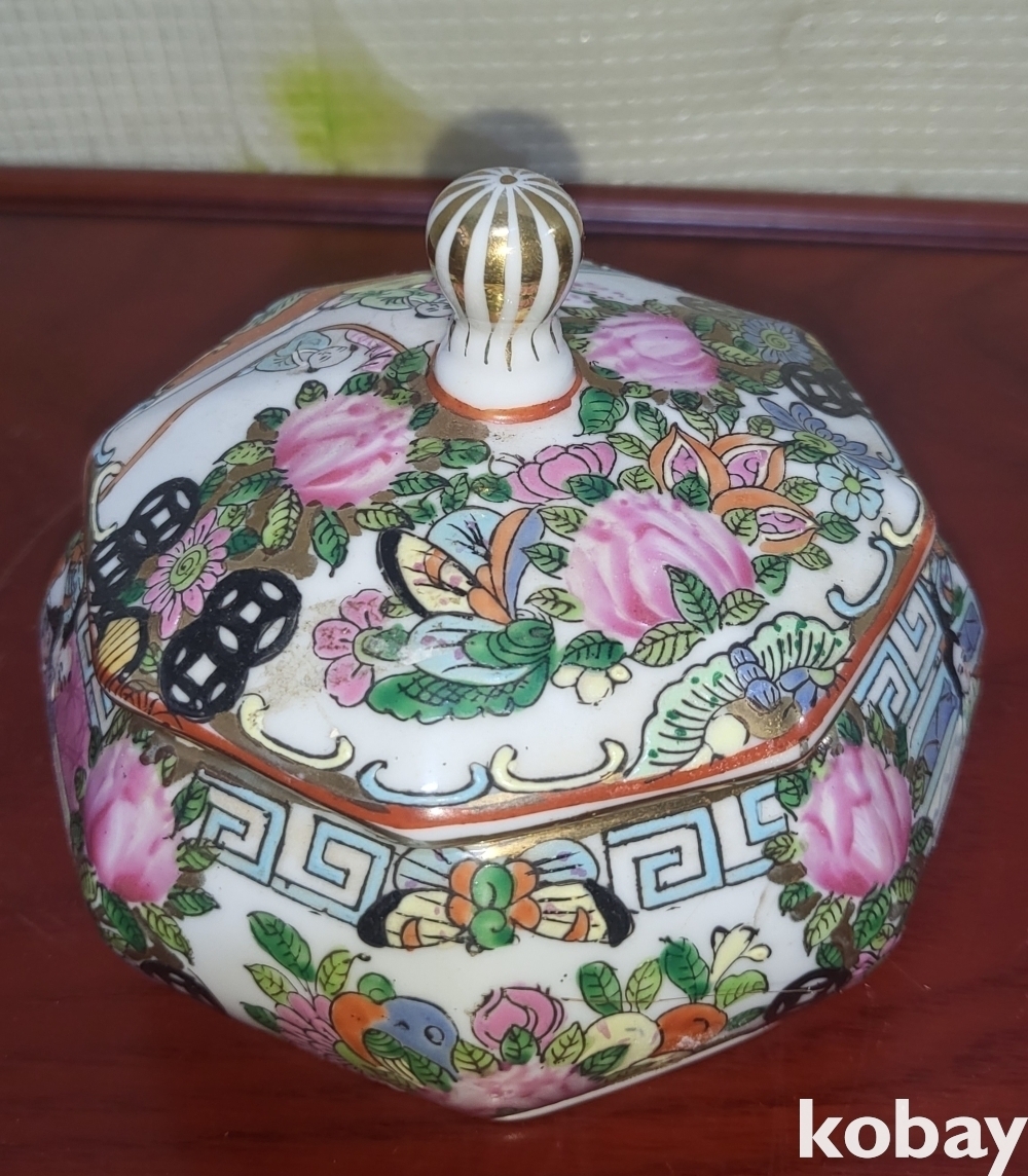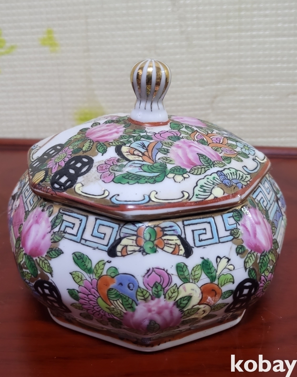 대청 건륭 관지 분채 인물문양 8각 유개호입니다,