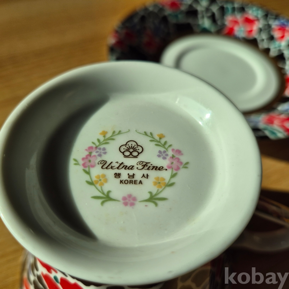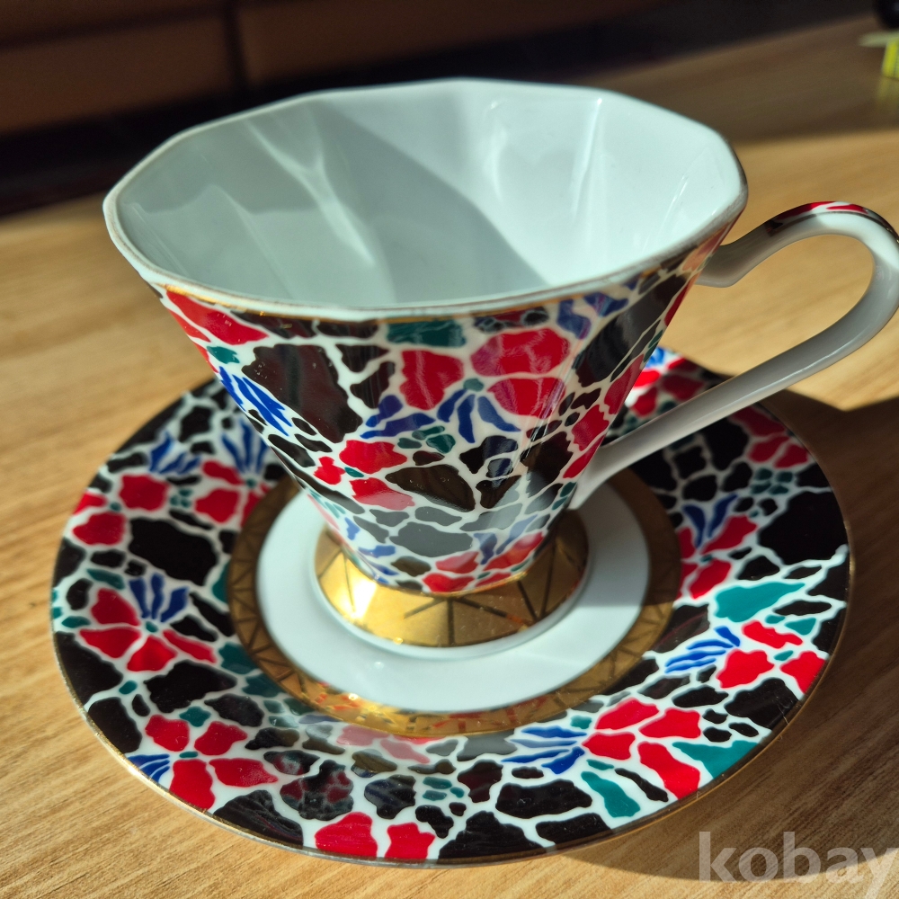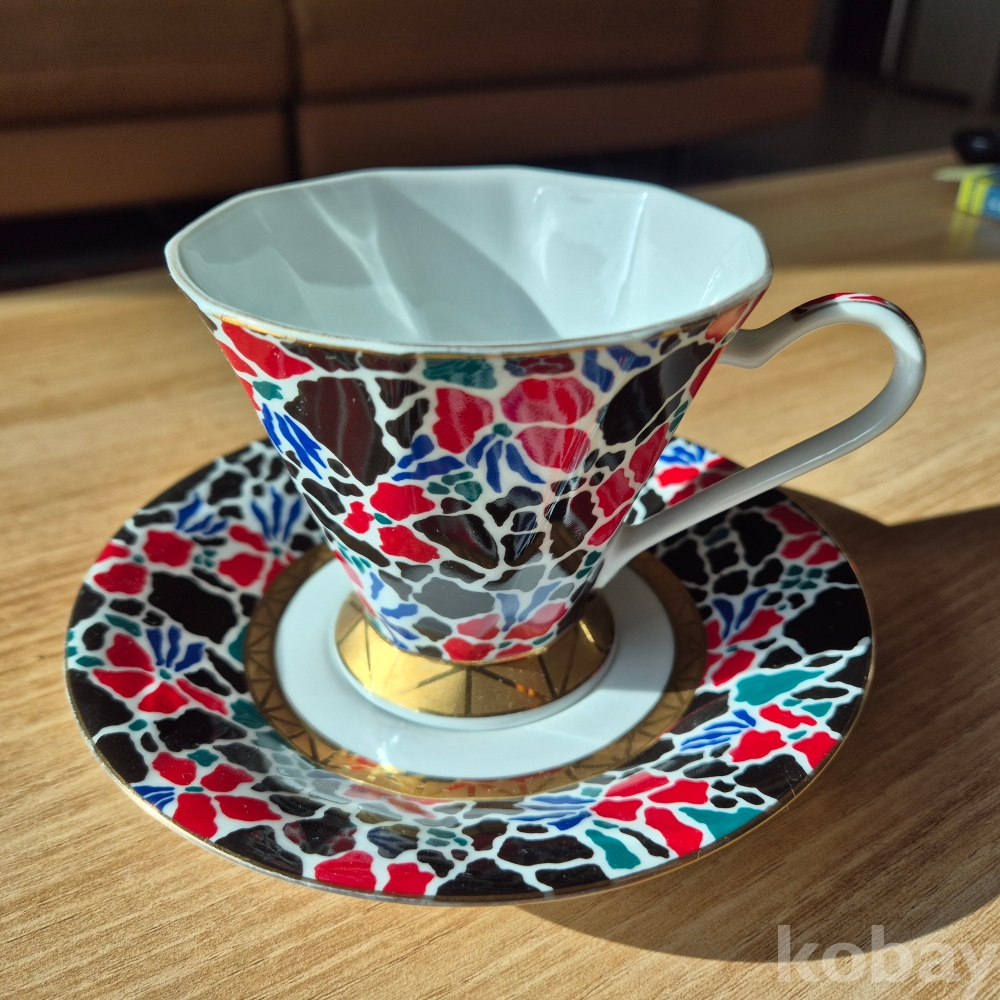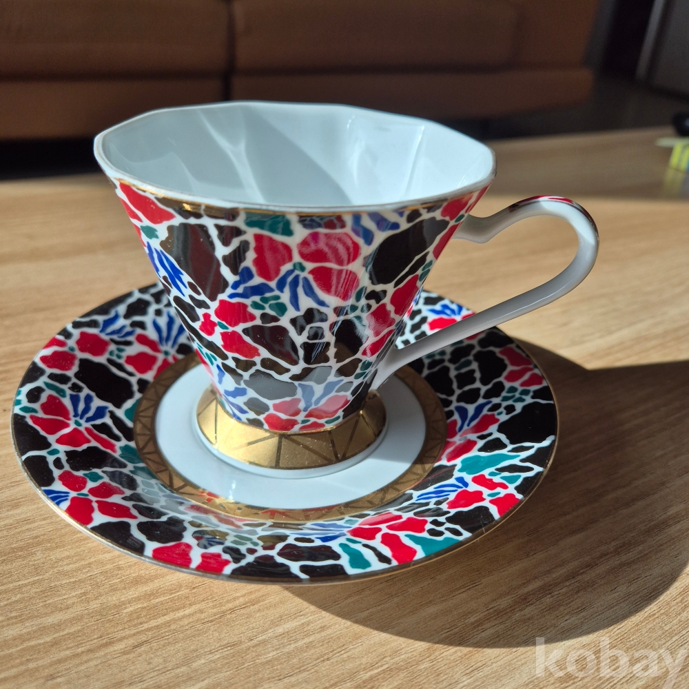 아트적인 패턴이 인상적인 빈티지 커피잔 세트입니다.