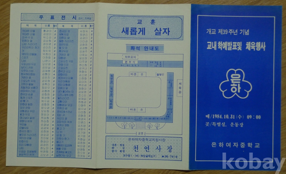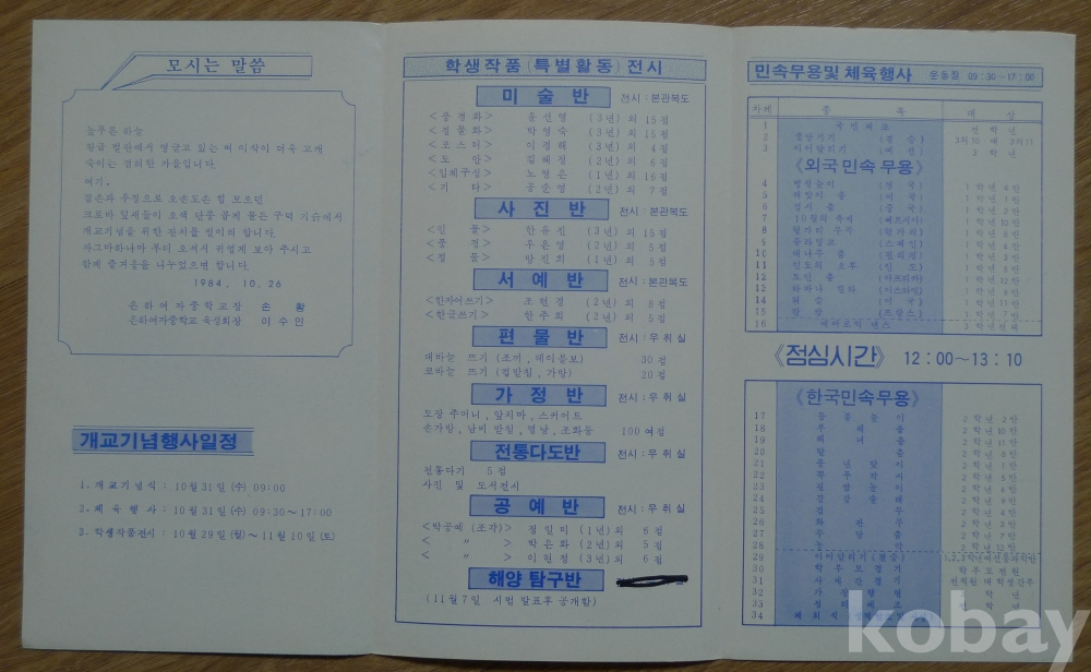 1984년 부산 은아 중학교 개교 39주년 교내 학예발표회 및 체육행사 안내 전단지