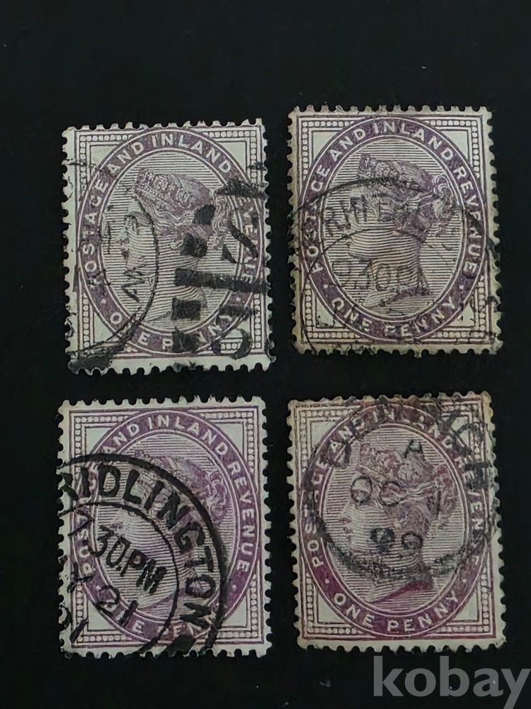 영국 식민지 스트레이츠 세틀먼츠 우표 원페니 우표 4장 일괄 1867년 ~ 발행 우표 클랙식 우표.