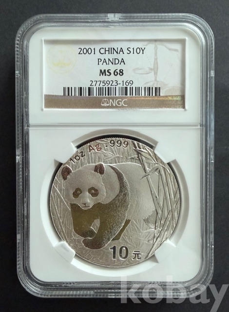 [1온스 은화] 2001년 판다 은화 NGC MS 68