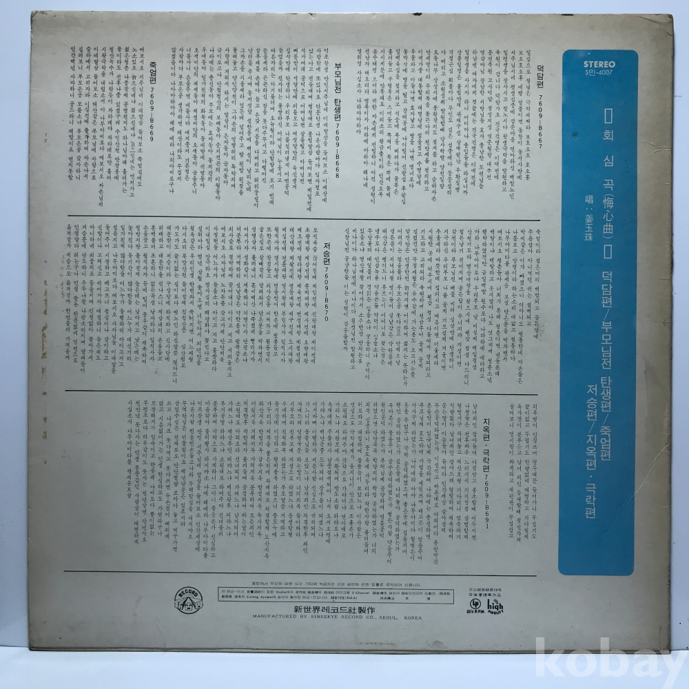 LP 83,805-20 민요 - 회심곡 (김영임) _ 자켓 EX 알판 EX+ 국내반