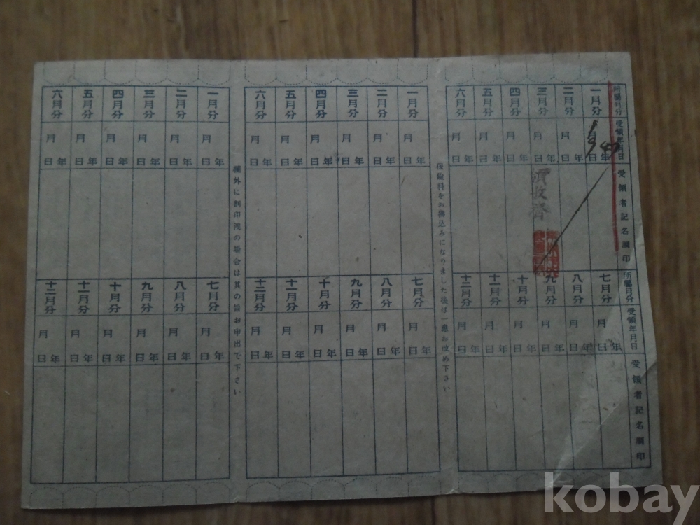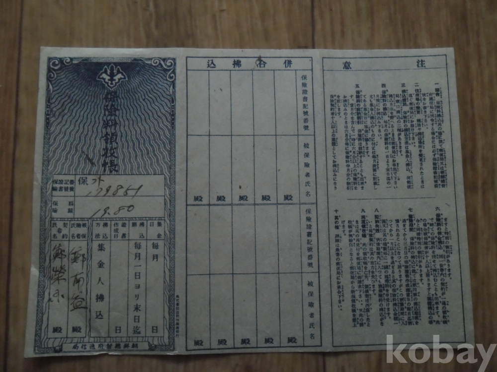 1947년 체신부 발행 보험료영수장(총독부용지사용)