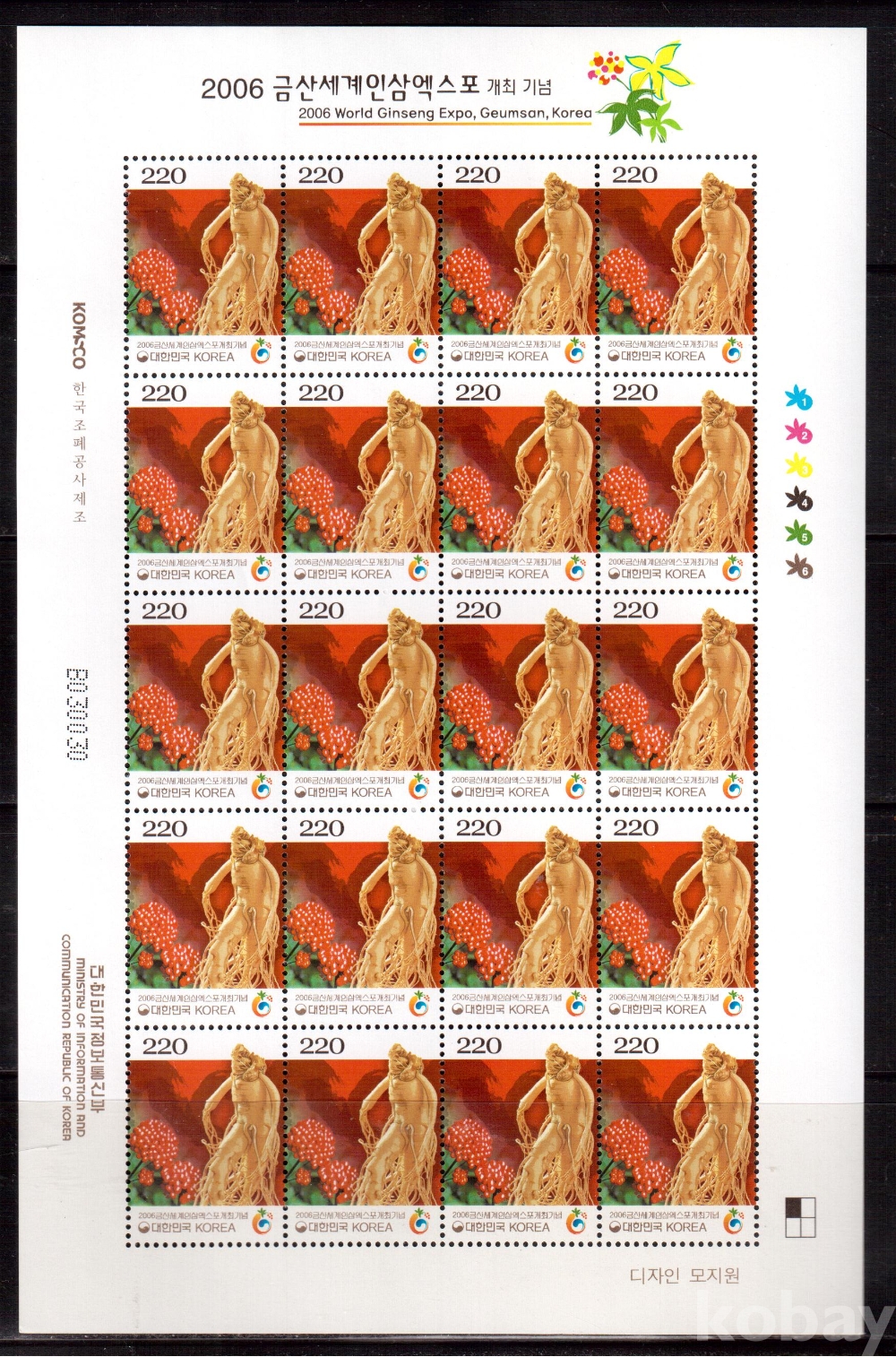 (한국전지) 2006.9.22 2006 금산세계인삼 엑스포개최 sheet of 20 MNH