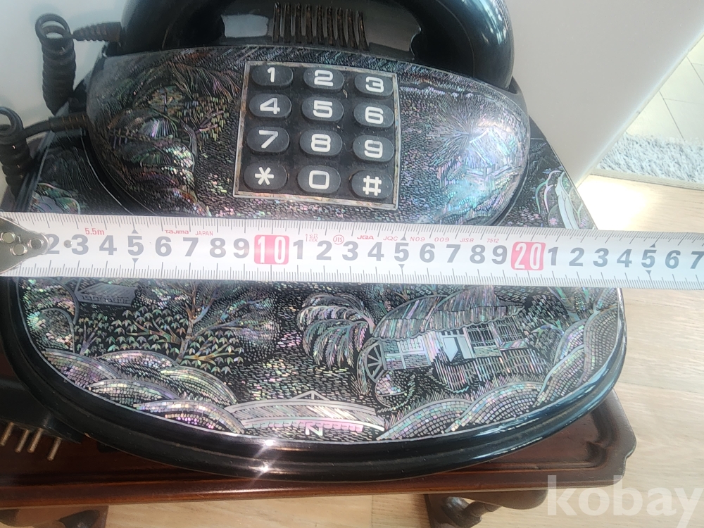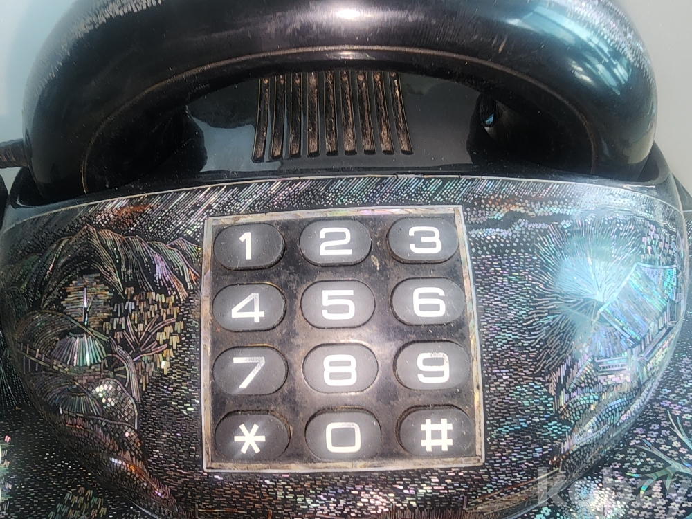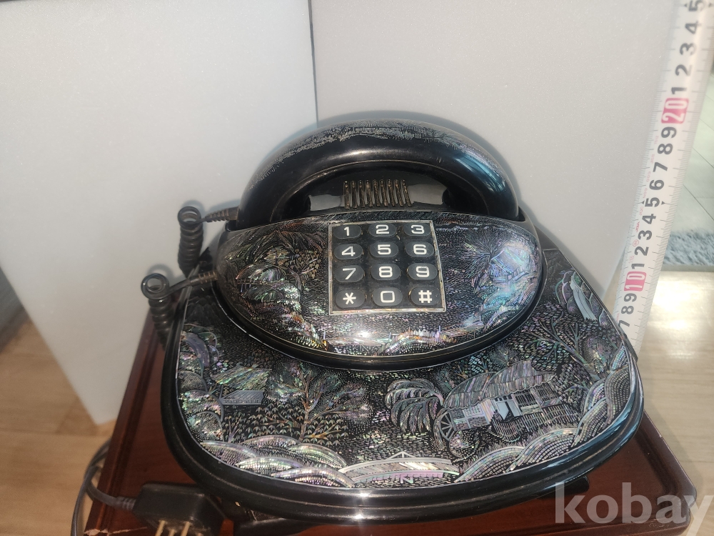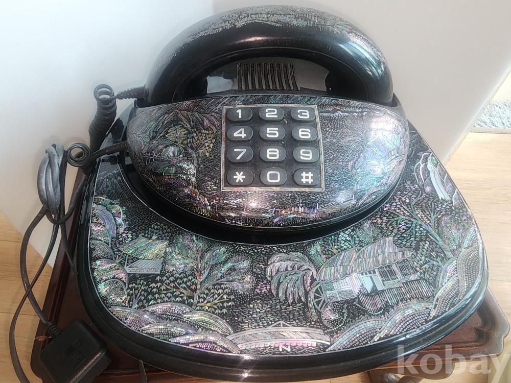 단순한 전화기가 아닌, 한국 전통 나전칠기 공예가접목된 예술품 같은 제품입니다. 세월이 무색할 정도로 자개의 영롱한빛깔이 잘 살아 있으며, 하단에메모용 서랍이 있는 모델이라 희소성이 매우 높습니다.