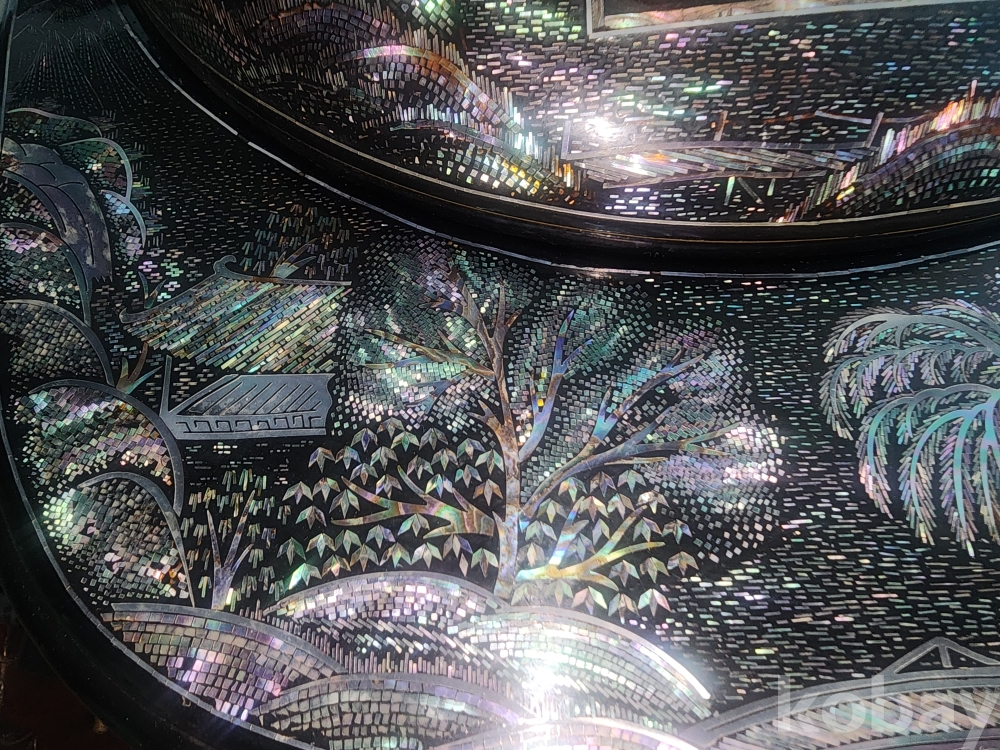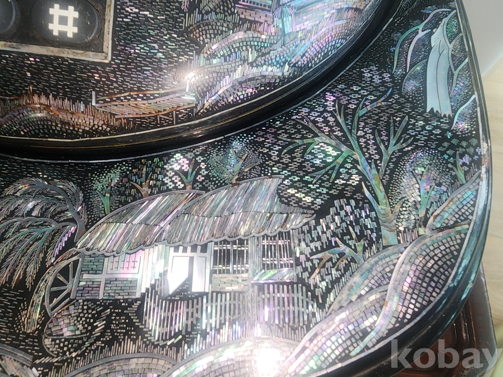 상태:* 자개 문양(초가집, 산천 풍경)이 매우