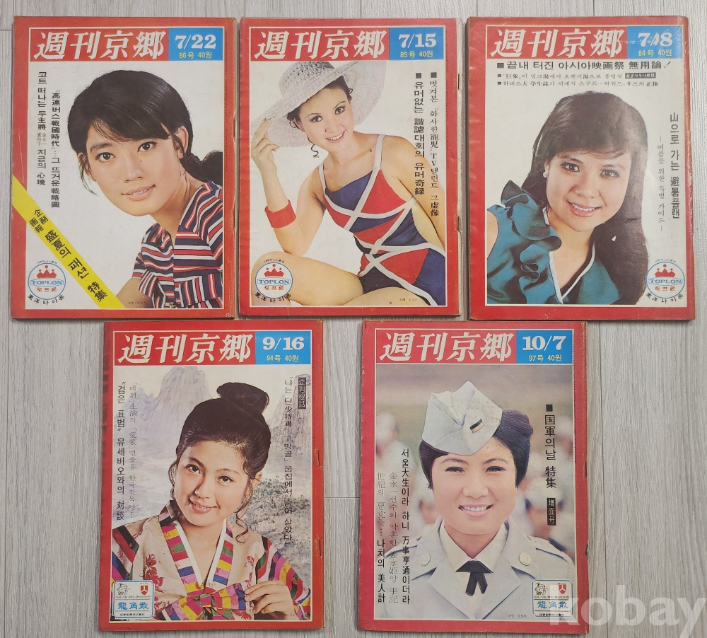 1970년도 주간경향 (정가40원) 84.85.86.94.97호 합5권 입니다 당대 연예인. 광고.사진들과 이슈들이 실려 있습니다 상태 낙질 파본 없이 최상 입니다