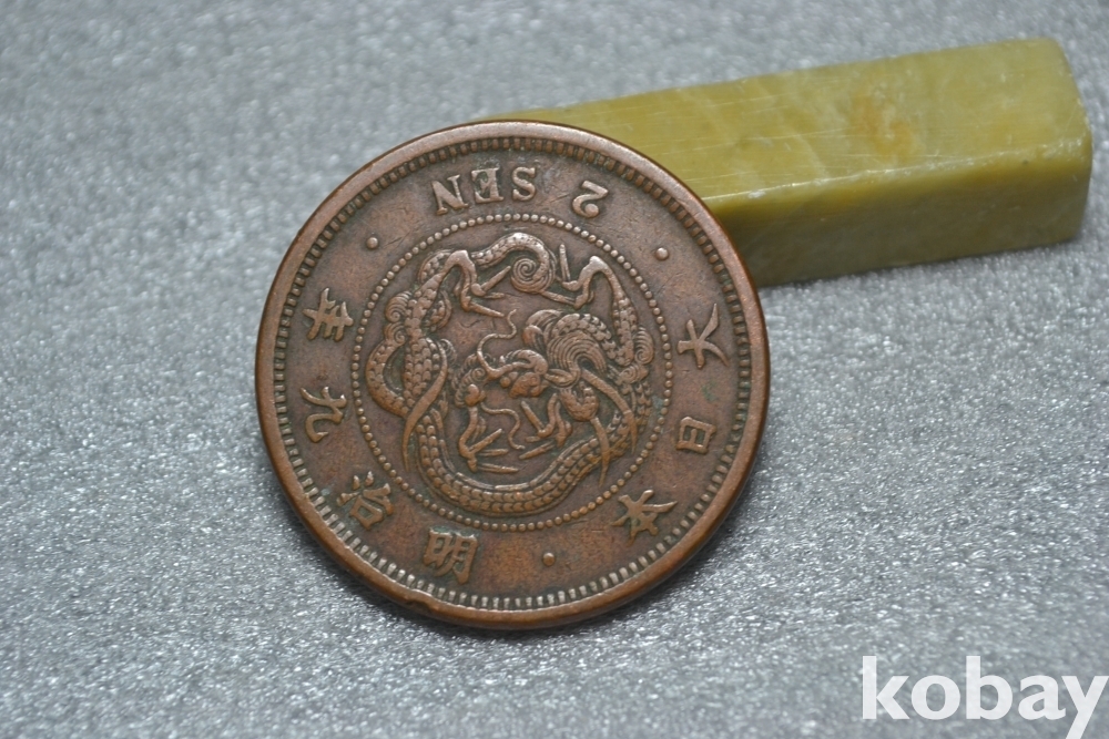 ㅡ> 100년 넘는 오래된 명치9년도(1876년도) 일본 대형 용 2전청동화 입니다.