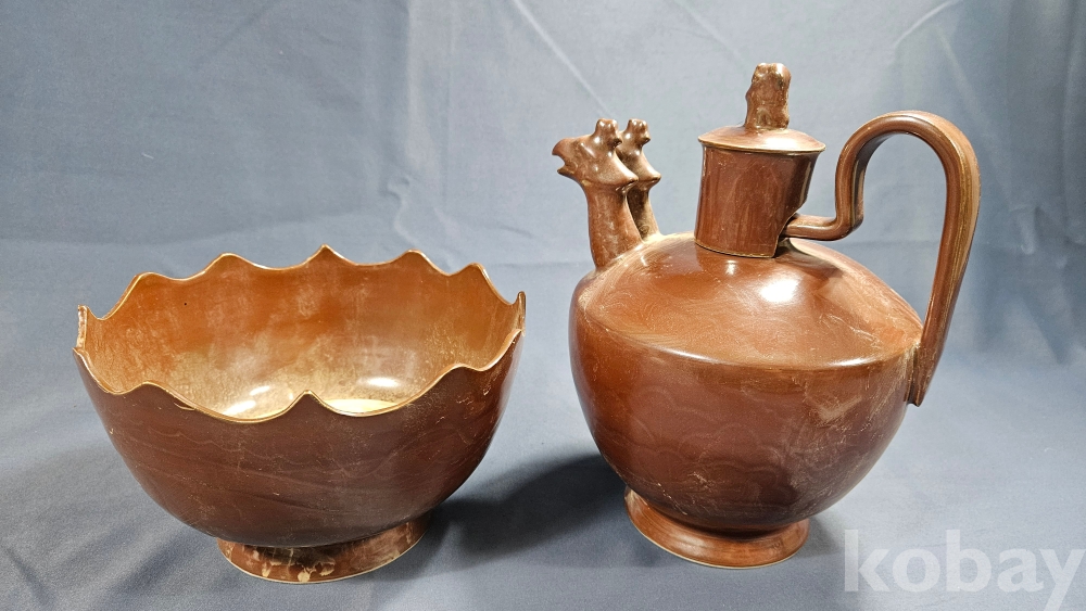 이 작품은 주전자와 승반까지 함께 나온 도자기입니다.