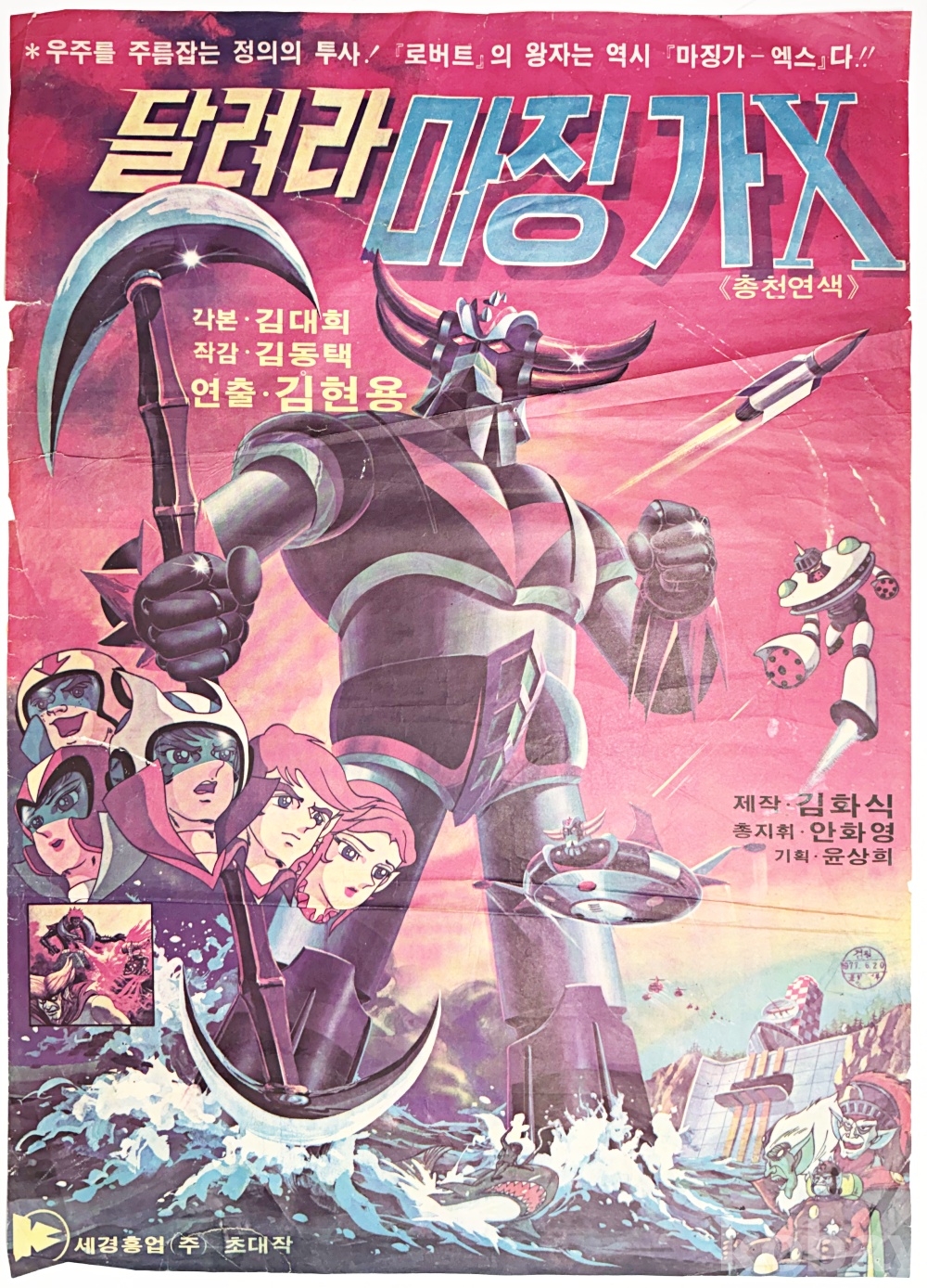상품 설명 | 한국 극장용 장편 만화영화 '달려라 마징가-X' 포스터이다. 상·하단 테이프 수리 있음. | ||