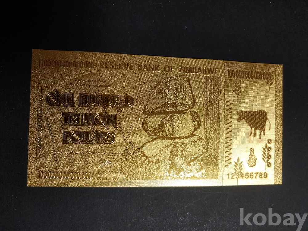 짐바브웨 100조 달러 기념화폐 (24k 순금박 )