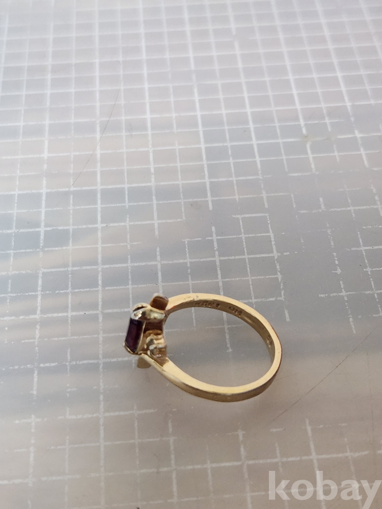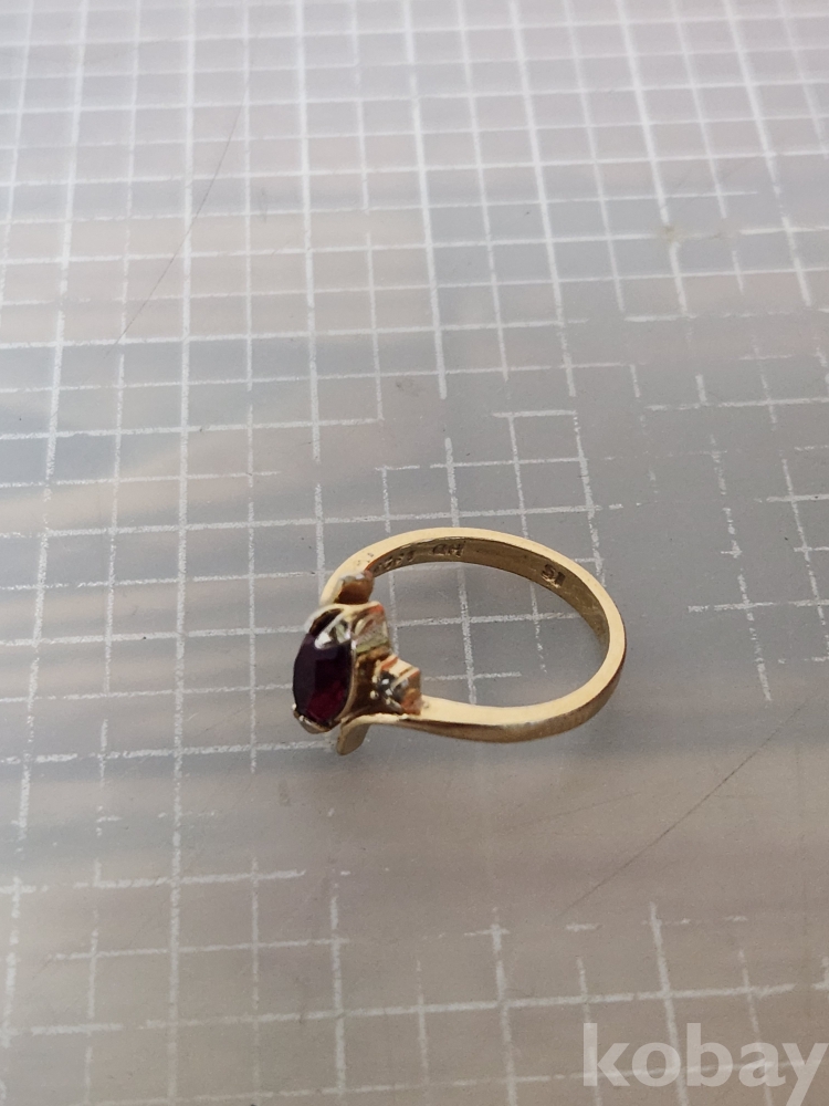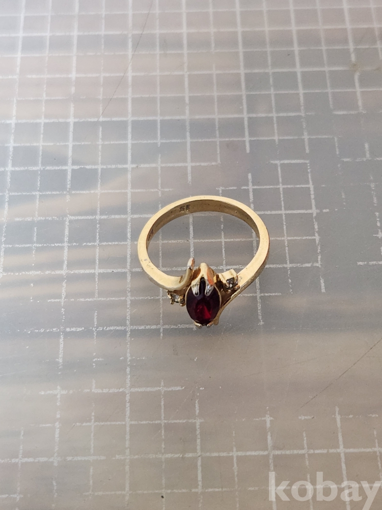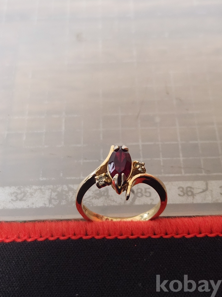 (땡처리) 루비컬러와 다이아몬드디자인 장식된 금색반지입니다