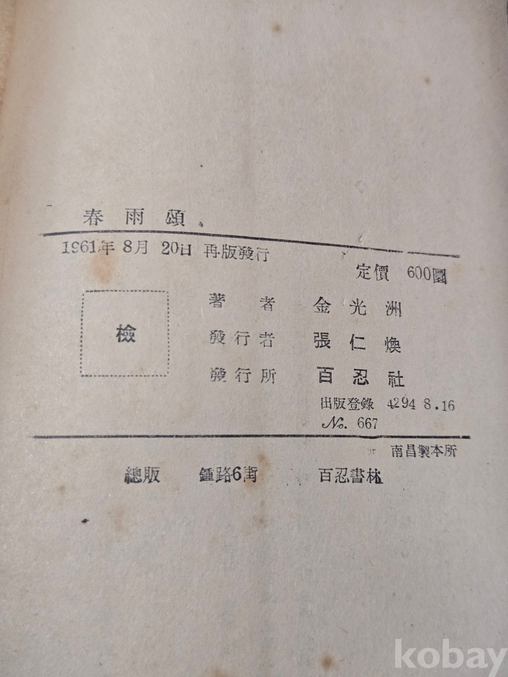 오래된 책들로 구김, 얼룩 부분손상등이 있으나 별도의 특기사항이 없을경우 낙장없이 온전합니다.