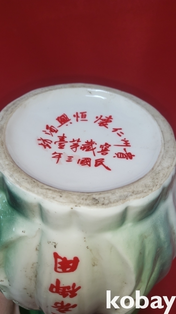 중화민국 3년 관지 보이는 배추형상 주병입니다,
