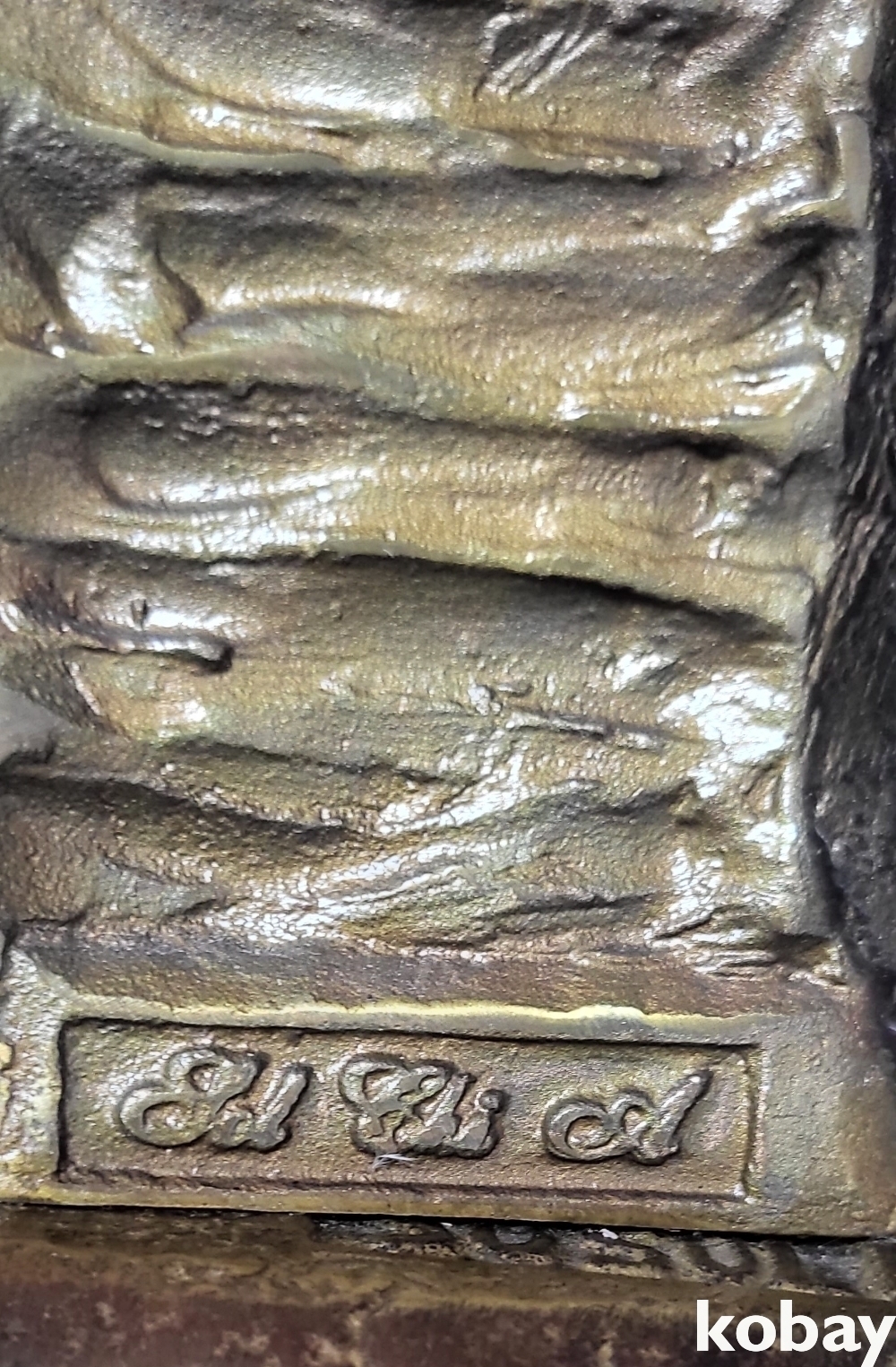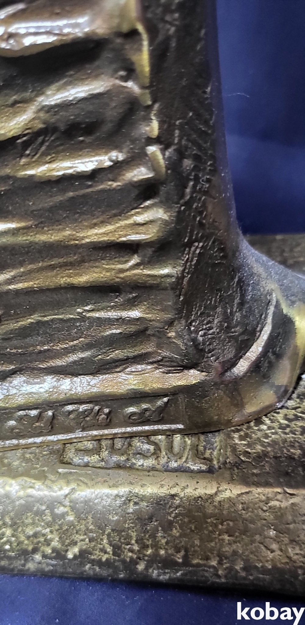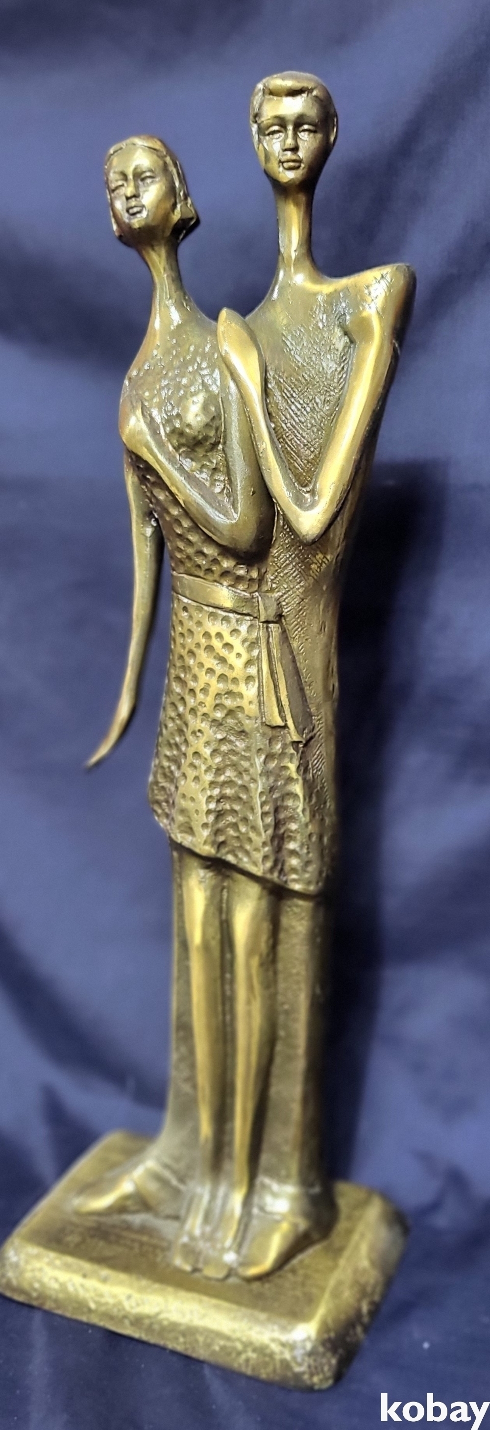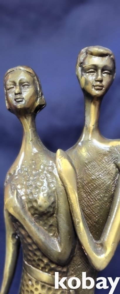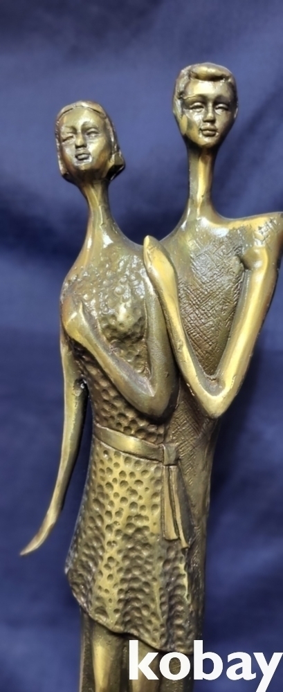 유명 작가의 사인이 보이는 황동 연인 작품입니다,