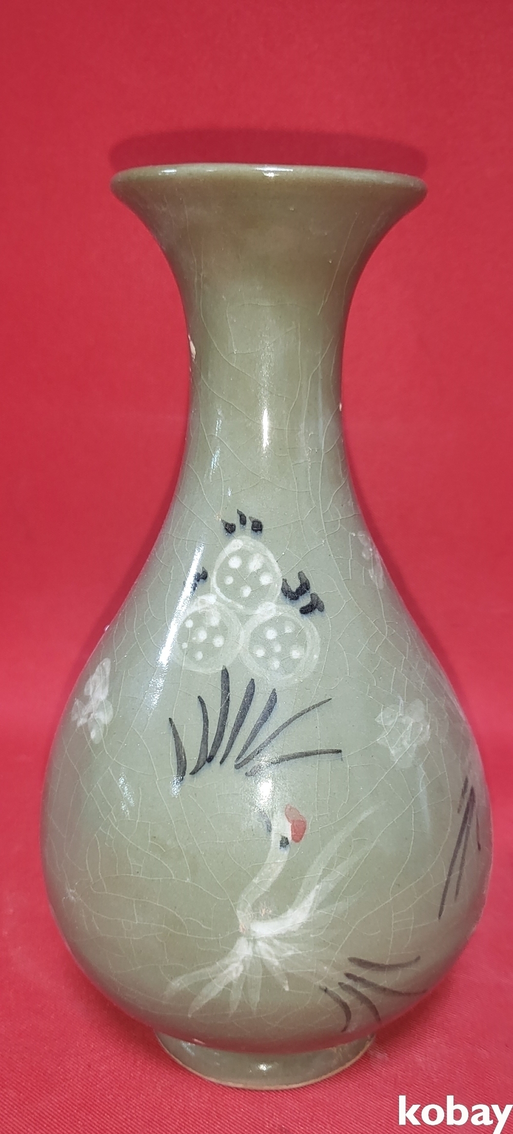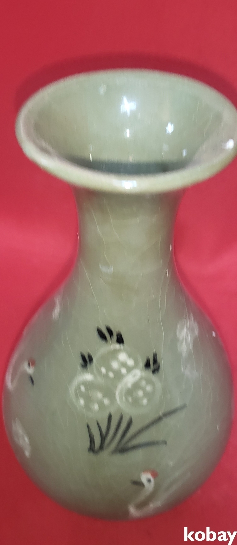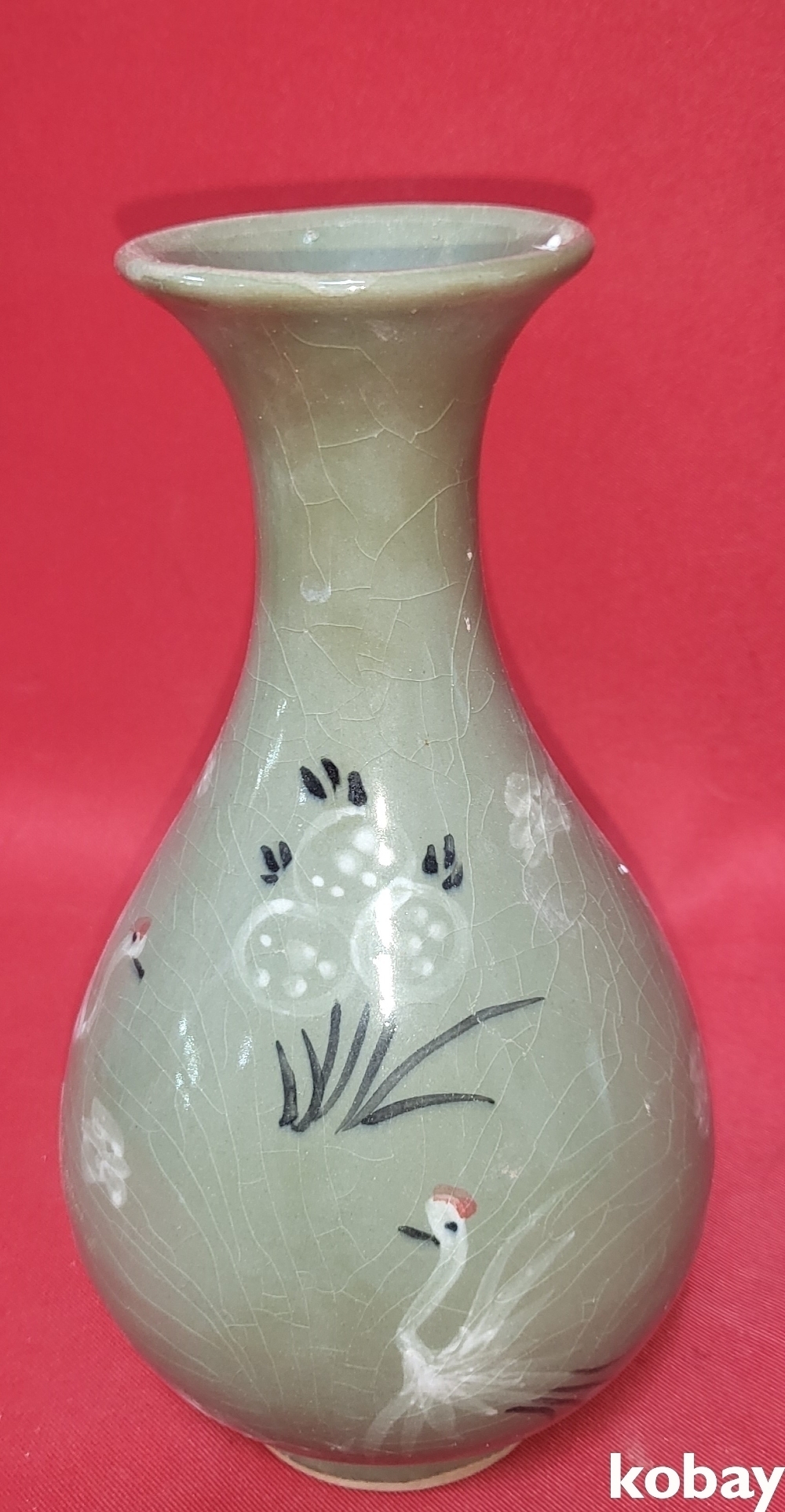 흑백 상감 청자 운학(雲鶴)문양 병입니다,