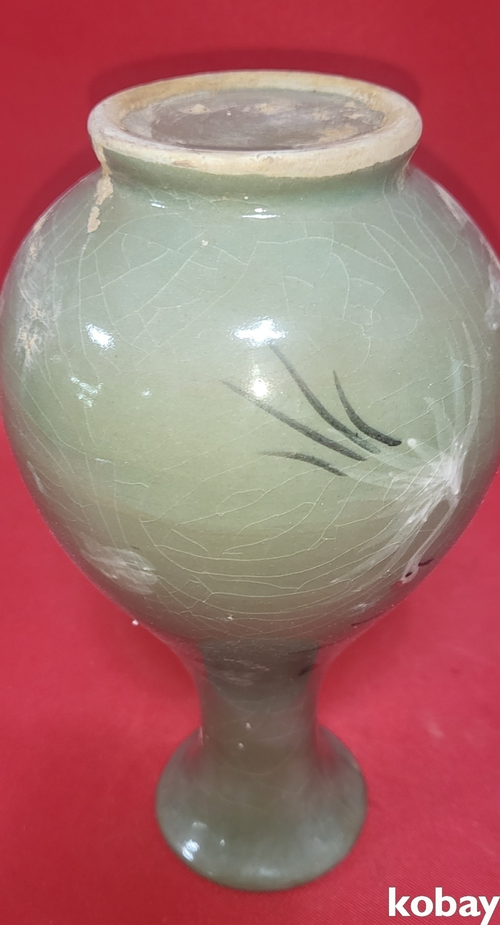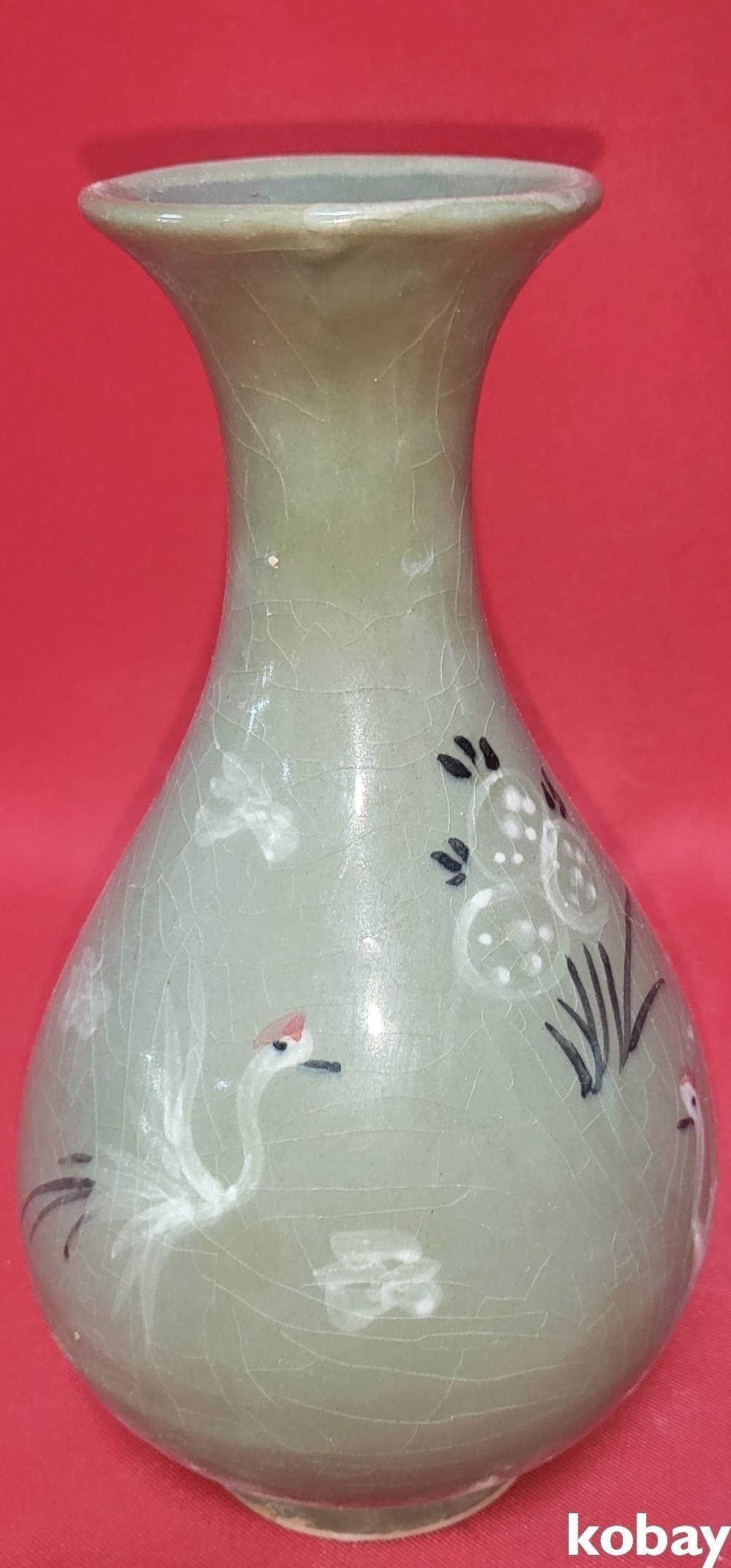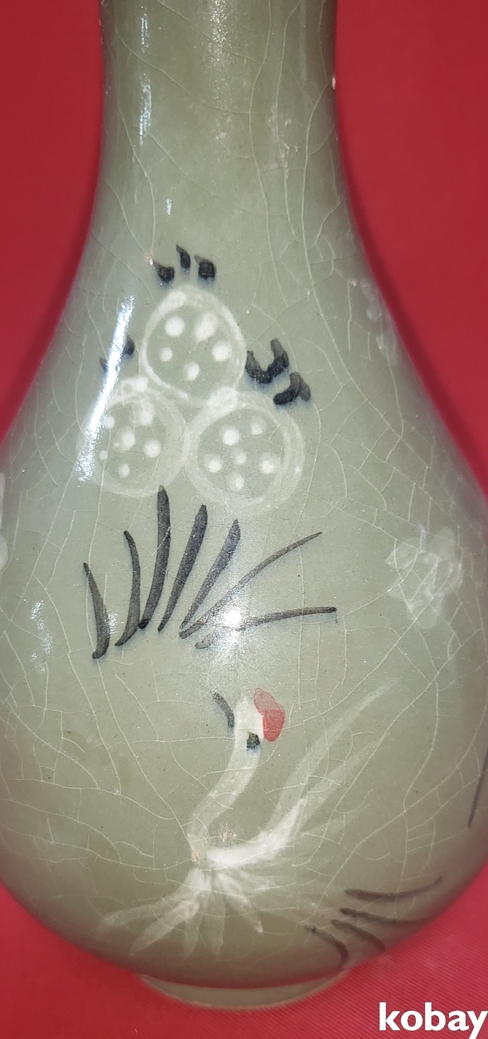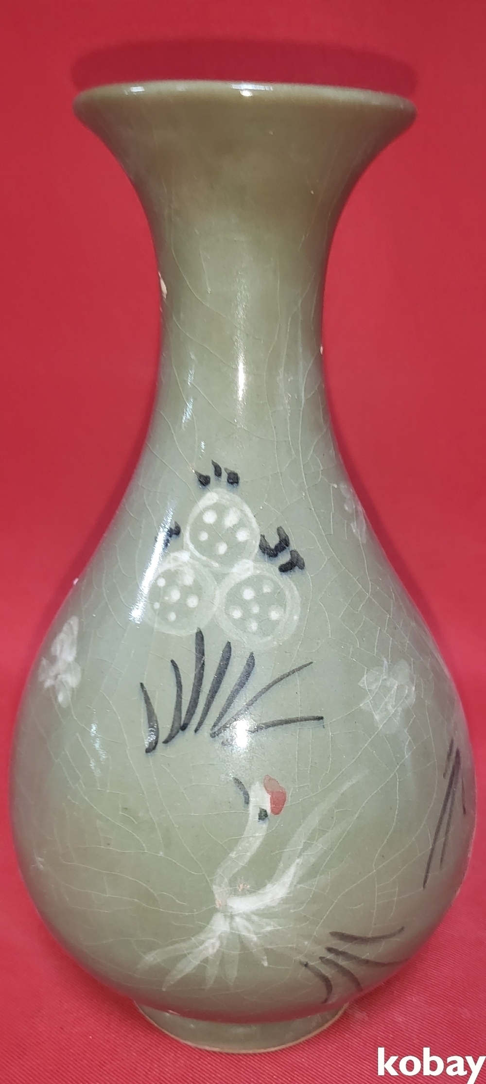 흑백 상감 청자 운학(雲鶴)문양 병입니다,