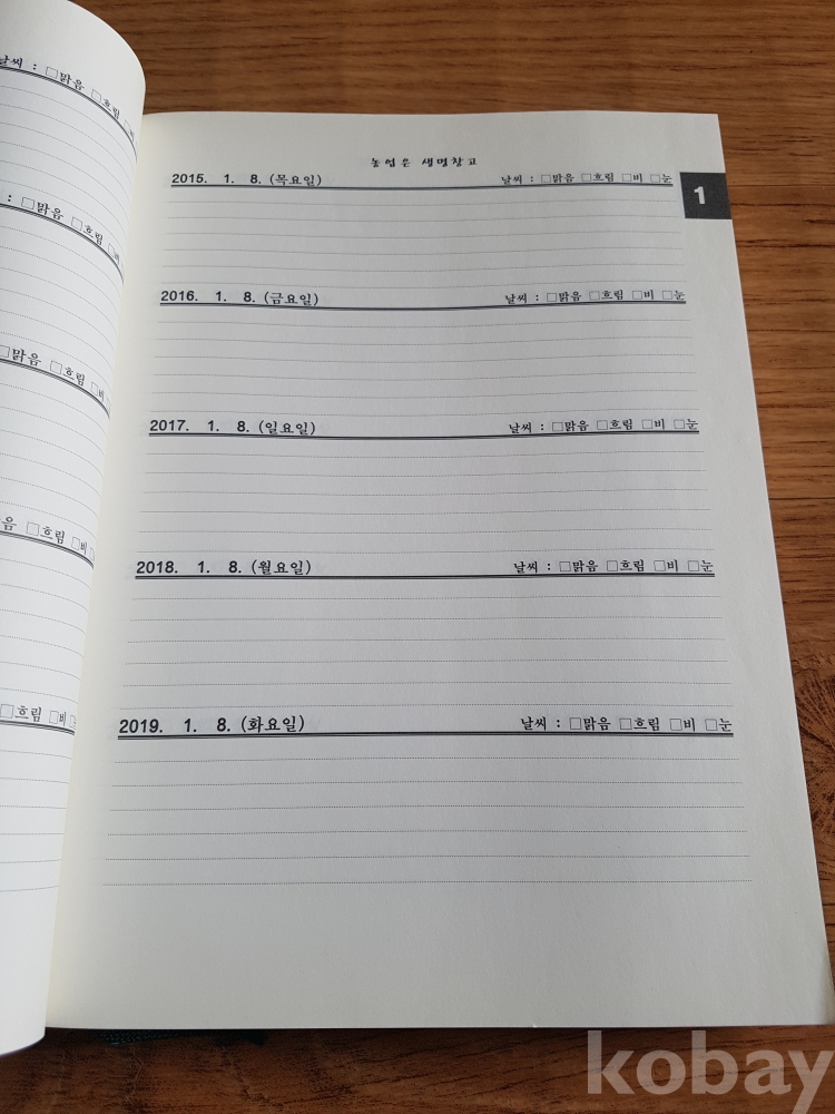 미사용 영농일지 2015 에서 2019년 까지 기록할수 있는것
