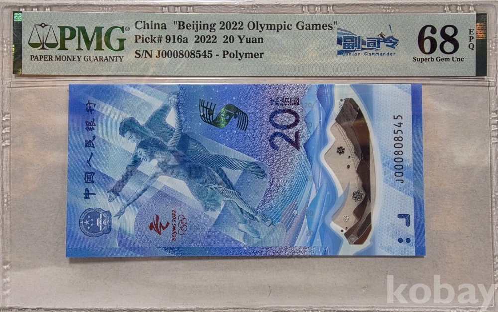 -2022년 중국 동계올림픽 기념 지폐 PMG68 고등급 입니다.